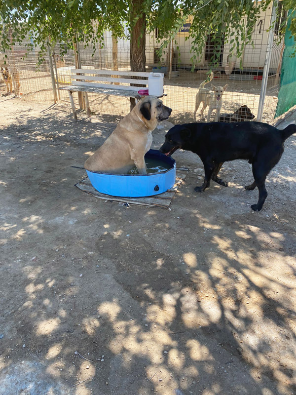 Eine willkommene Abwechslung sind die beliebten Pools. Warum sich die liebe und etwas pummelig gewordene Mar allerdings in das kleinste Pool setzen muss, bleibt ihr Geheimnis- jedem Tierchen sein Plaisirchen ;-)) Sie findet Eure Spende Weltkasse.