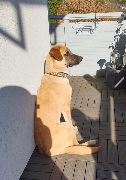 Ben ist jetzt seit März bei uns und er hat sich SUPER gemacht . Er ist ein großer Junge geworden und hat ziemlich FLAUSEN im Kopf. Wie auf dem Bild zu sehen genießt er die letzten Sonnestrahlen.