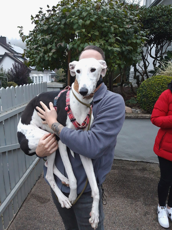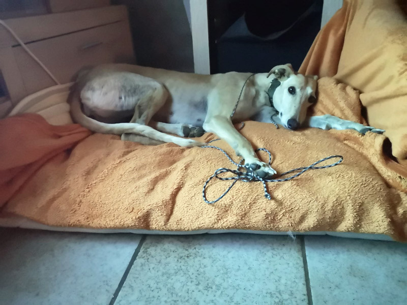 heute müssen wir Euch von unserem Pflegegalgo Loto berichten. Der hübsche Kerl ist wahrlich ein Pechvogel. Kurz vor der Adoption hat er sich nämlich beim Spielen und Toben sein rechtes Vorderbein gebrochen. Elle und Speiche waren beide frakturiert und dissloziiert und mussten notfallmäßig operativ mit einer Platte versorgt werden. Das hat natürlich mit 2200 Euro ein ordentliches Loch in unsere Tierschutzkasse gerissen. Weitere Kosten stehen noch aus, da die Platte wieder entfernt werden muss. Allerdings ist Lotto wirklich ein ganz braver Patient.