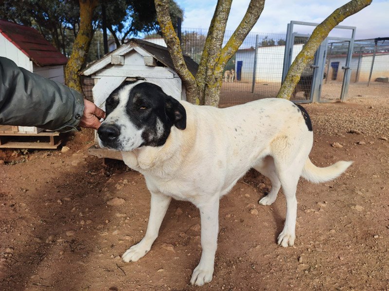 Dama wurde gemeinsam mit zwei jungen Hunden und einem etwas älteren Rüden gesichert, als diese alleine durch die Gegend streiften. Dama war zu dem Zeitpunkt hochschwanger und der Rüde, der das kleine Rudel begleitete, vermutlich der Vater der Welpen und auch der beiden Junghunde. Mitte Februar 2021 brachte Dama dann, im Schutze der Albergue, Ihre Welpen zur Welt. Insgesamt 6 Babys, 3 Rüden und 3 Hündinnen. Dama kümmerte sich ganz liebevoll um ihre Rasselbande und hat sie zu stattlichen und freundlichen Hunden herangezogen. Aber jetzt ist endlich auch mal Dama dran, einen liebevollen Lebensplatz zu finden. Unser Team konnte die schöne Hündin im November 2021 persönlich kennenlernen und war begeistert von ihrer ruhigen Art. Dama ist eine sehr sanfte Hündin, eher unterwürfig bei Fremden. Sie lässt sich sehr gerne streicheln, legt sich dabei auf den Rücken und genießt es sehr. Sie ist nicht aufdringlich und wirkt sehr ausgeglichen. Sie gehört zu den großen Hunden, ist aber dabei nicht extrem massig und einfach nur wunderschön. Das spanische Team berichtete uns, dass man sich einfach nur in Dama verlieben muss, da sie so eine tolle Hündin ist. Jedes Leckerchen, das sie erhält, trägt sie in ihrem Mund zu ihren jetzt schon großen Kindern und legt es ihnen vor die Füße. Sie ist eine absolute Mama und ein richtiger Herzhund.