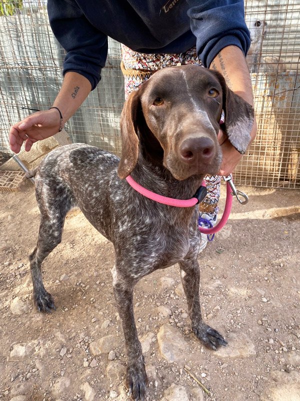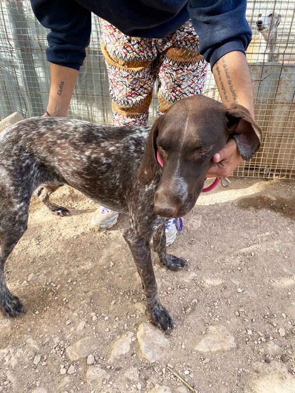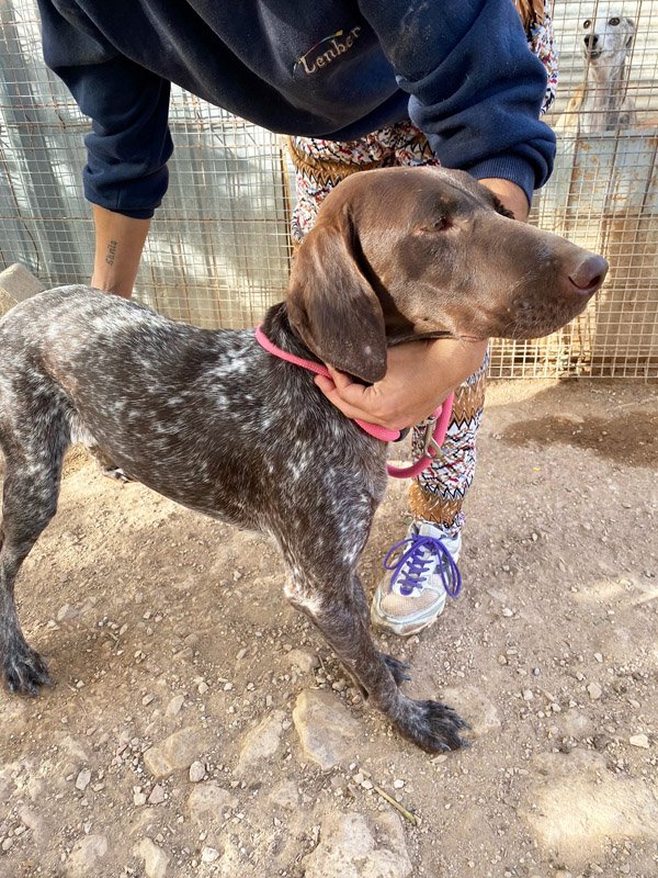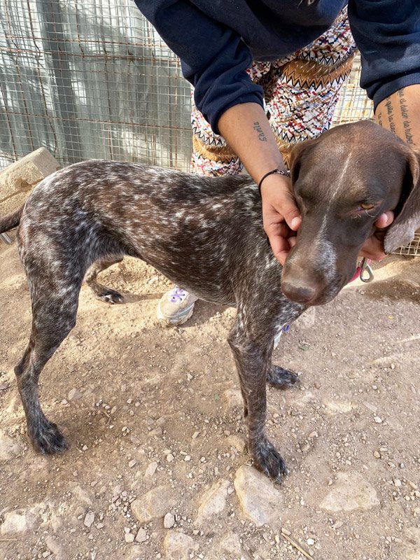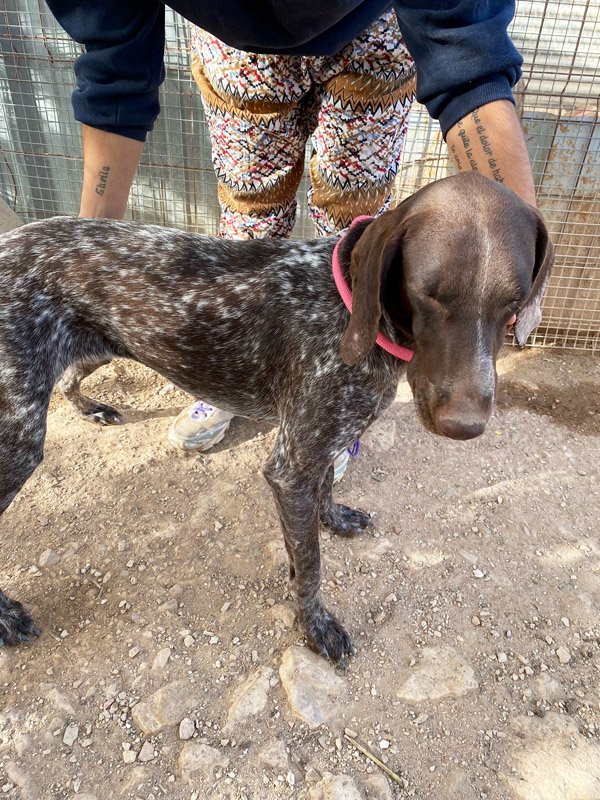Trini wurde von Mitarbeitern der Albergue während eines Spaziergangs aufgefunden. Die arme Hündin hatte eine große, klaffende Wunde am Hals, die vereitert und mit Maden übersät war. Nicht auszudenken, welche Schmerzen Trini gehabt haben muss. Vermutlich wurde sie ausgesetzt und vorher ihr Chip herausgeschnitten. Eine fürchterliche, grausame Methode, die Spuren zum Besitzer der Hündin zu verwischen. Leider kommt dies häufig vor… Zum Glück wurde Trini gefunden und sie konnte sich bei den Mitarbeitern der Albergue, ein wundervolles Ehepaar mit kleiner Familie, erholen. Trini wurde medizinisch versorgt und bereits nach kurzer Zeit, ist die Wunde schon prima verheilt und die zuckersüße Patientin auf dem Weg der Besserung. Trini ist sehr menschenbezogen, was fast unglaublich erscheint, wenn man bedenkt, was Menschen ihr zugefügt haben. Ihr Vertrauen scheint ungebrochen und sie ist lieb, aktiv und fröhlich. Mit ihren Artgenossen versteht sie sich prima. Jetzt wünschen wir uns nur noch ein liebevolles Zuhause für die hübsche Hundedame :) Interessenten sollten sich über die Eigenschaften von Vorstehhunden informieren.