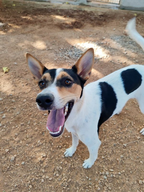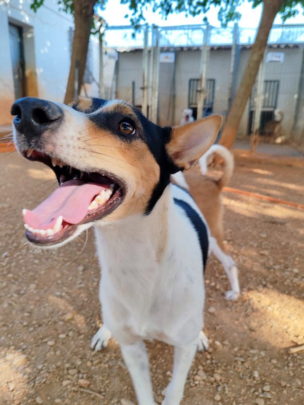 Guera wurde streunend aufgefunden und in die Perrera gebracht. Ein Chip war wie so oft nicht zu finden, aber es meldete sich auch kein Besitzer, der sie vermisste. Im Tierheim zeigt sich die schöne Tri-Color-Hündin von ihrer besten Seite. Sie läuft brav an der Leine und auch mit anderen Hunden versteht sich Guera gut. Sie geht stets freundlich und offen auf ihre Artgenossen zu. Zu den Mitarbeitern im Tierheim ist sie sehr liebevoll und kann von Streicheleinheiten gar nicht genug bekommen. Guera schmiegt sich so eng wie nur möglich an die Mitarbeiter, hält ganz still und genießt jede Berührung- um sich dann mit einem Küsschen zu bedanken. Guera ist sehr schlau und hat schnell gelernt, dass in den Taschen meist Leckerlis versteckt sind und ist dann immer besonders brav :) Interessenten sollten sich über die Eigenschaften der Bodeguero informieren.