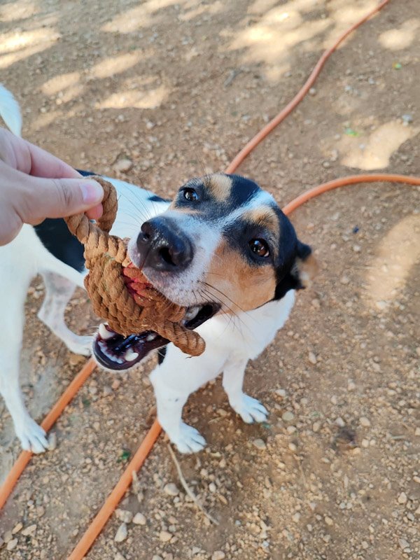 Weiteres Video: Leckerlis im Hof der Perrera - Guera, Bodeguero-Mischlingshündin sucht ihre liebevolle Familie