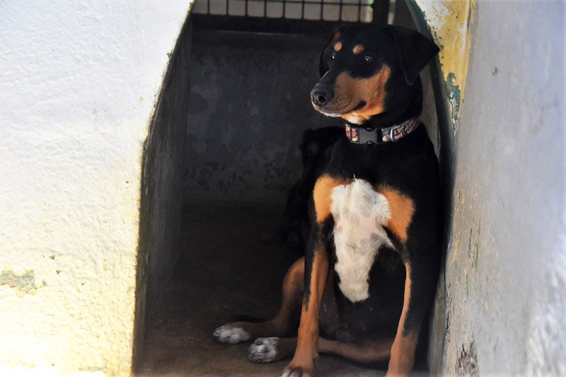 Auch Yoda ist seit dem 21. Februar im Tierheim. Sie kommt aus einer schlimmen Rettung von einem 'Animal hording' (Tier-Messi). Viele ihrer Freunde waren schon tot und es war für die Tierschützer ein furchtbarer Anblick. Yoda und ihre Mutter Bamba konnten gerettet werden und dürfen nun bei Kimba ein neues Leben beginnen. Sie sieht aus wie eine kleine Kopie ihrer Mutter, nur ist sie nicht so pummelig. Yoda ist schüchterner wie ihre Mutter und tut sich noch schwerer mit dem Kontakt zu uns Menschen. Sie orientiert sich sehr an ihrer Mutter, was auf der einen Seite gut ist, aber auf der Anderen versteckt sie sich auch oft hinter ihr. Wir nehmen an, dass sie sich besser entwickeln wird, wenn man sie von ihrer Mutter trennt. Yoda muss die Welt noch kennenlernen, sie hatte kein schönes Leben bisher und hat nun endlich eine eigene Familie verdient, die ihr die Zeit gibt sich zu einem sicheren Hund zu entwickeln. Ganz langsam nimmt sie Kontakt zu den Mitarbeitern im Tierheim auf und zeigt sich dabei immer liebevoll.
