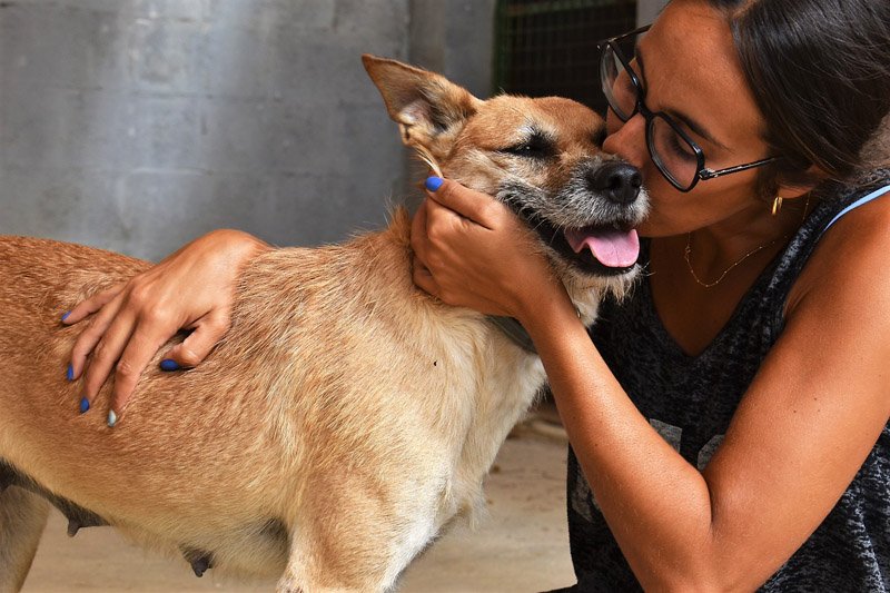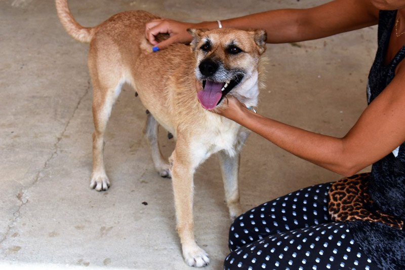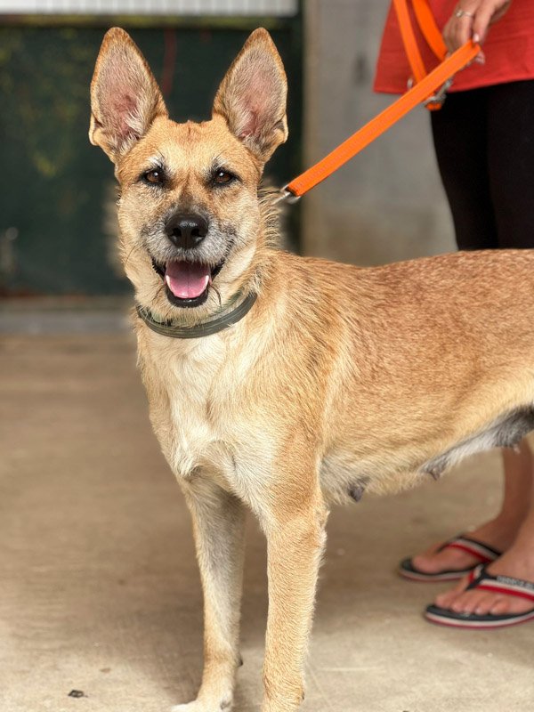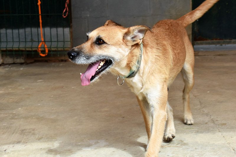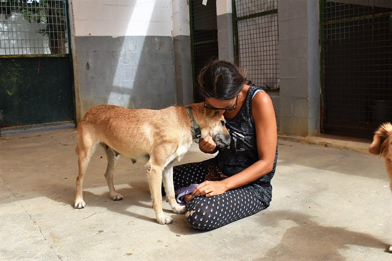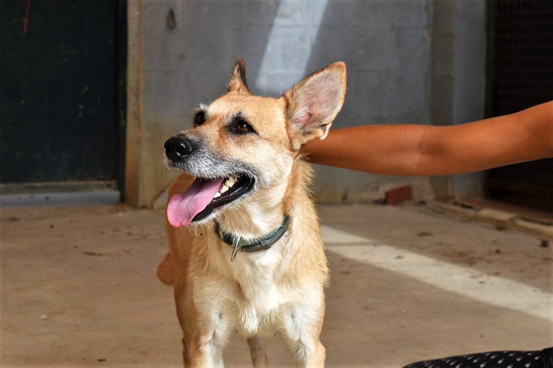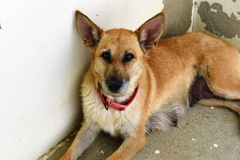 Belle ist die Mama der 'Wattebällchenbande' und seit dem 24. Mai im Refugio. Das Kimba hatte einen Anruf bekommen, weil eine Hündin im Garten einer Frau ihre Welpen bekommen hatte. Die Frau hatte sich schon einige Zeit um die Straßenhündin gekümmert, sie gefüttert und ihr frisches Wasser gegeben. Irgendwann ist Belle wohl in ihrer Not einen sicheren Platz für die Geburt ihrer Welpen zu haben, einfach bei der Frau geblieben. Sie hatte 12Welpen, aber draussen im Garten, ohne wirklichen Schutz. Belle und auch die Welpen waren voller Zecken und Flöhe und haben schlimm gehustet. Die Frau hat uns erzählt, dass Belle immer bei McDonalds im Dorf gewesen ist und die Menschen haben ihr Burger oder Essbares gekauft. Man gab ihr dann die Tüte und Belle hat alles in ihr Zuhause, dem Garten der Frau, gebracht und ganz sorgsam gegessen. Sie ist so schlau und weiß genau, was sie tun musste um zu Überleben. Belle hat sich im Tierheim rührend um ihre Kinder gekümmert, aber leider sind 6 an einem Virus gestorben. Es war eine schlimme Zeit voller Trauer. Belle ist jetzt wieder fröhlicher und folgt den Mitarbeitern auf Schritt und Tritt. Sie ist sehr gelehrig und wirklich treu. Sie verteilt immer ganz sanft Küsschen und liebt es sehr, wenn man ihr auch nur ein kleines bisschen Aufmerksamkeit schenkt.