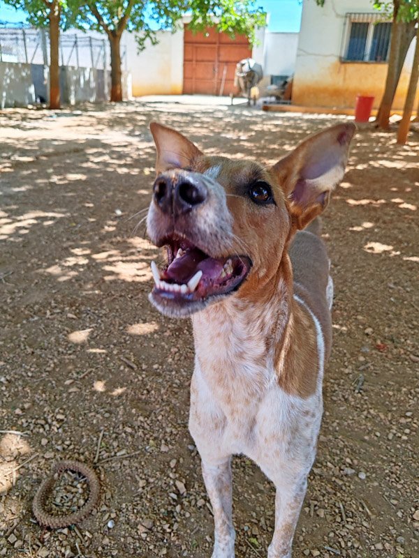Pinon und sein Bruder Castano konnten gesichert werden, nachdem sie einige Tage in den Straßen von Villarobledo unterwegs waren. In der Perrera zeigte sich, dass die fröhlichen Brüder wohl bisher nicht viel Kontakt zu ihren Artgenossen hatten. Anderen Rüden gegenüber sind sie noch misstrauisch und es entscheidet die Sympathie. Hier muss er einfach noch etwas unterstützt werden um Hundebegegnungen souverän zu meistern. Mit Hündinnen versteht Pinon sich problemlos. In der Hundespielgruppe kommt Pinon gut zurecht. Spaziergänge an der Leine werden schon fleißig geübt. Pinon ist ein menschenbezogener, junger und aktiver Hund und wir wünschen uns, dass er schon bald ein liebevolles Zuhause findet.