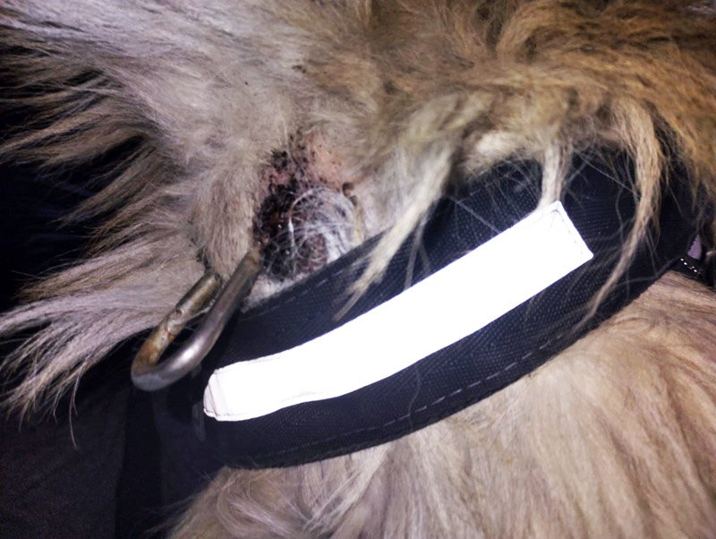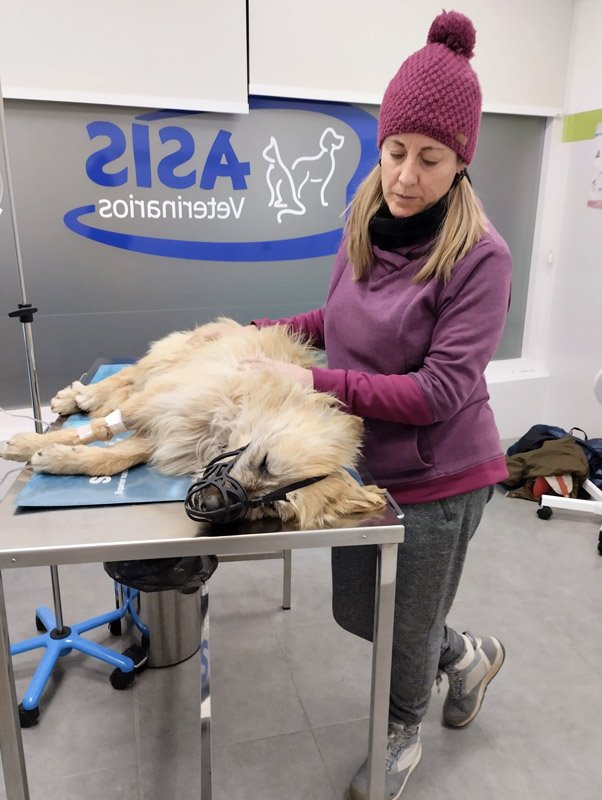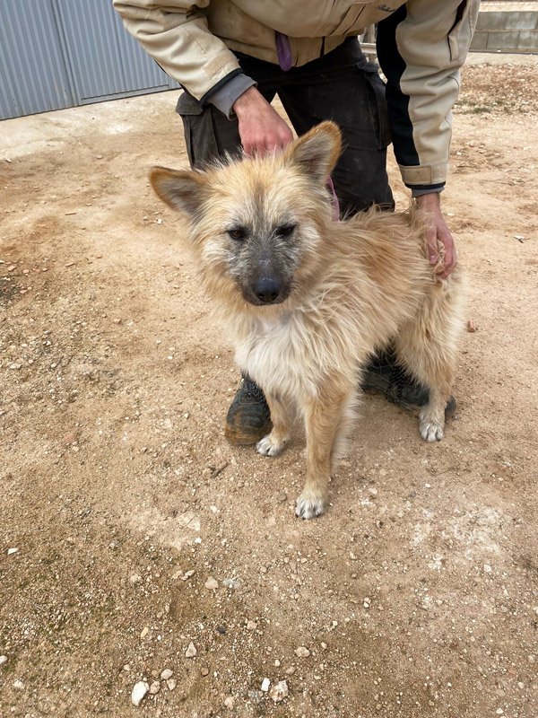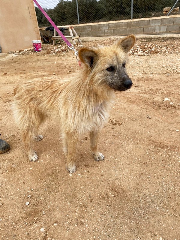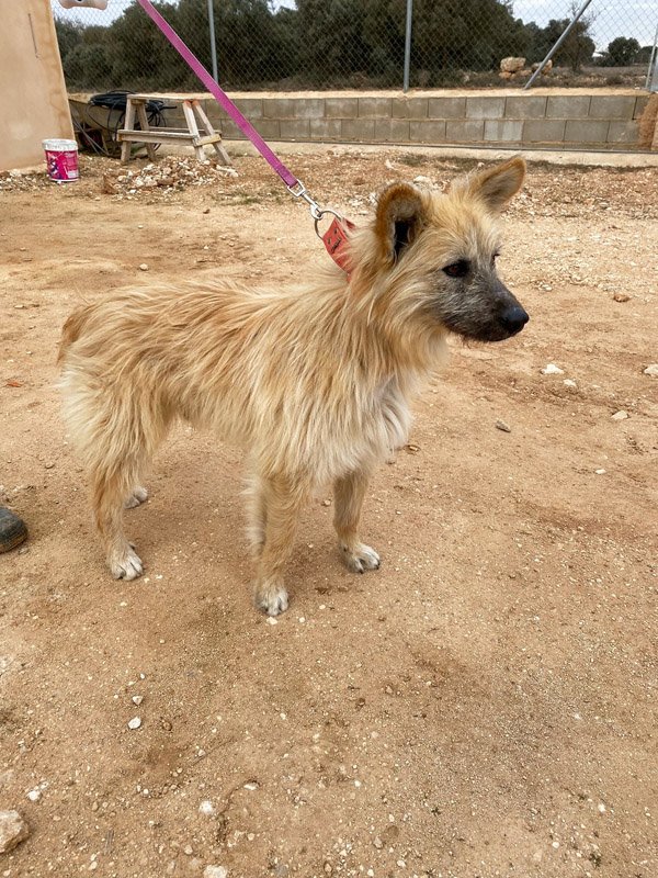 Und wie so oft stehen wir fassungslos vor einem armen Tier und fragen uns wie grausam Menschen sein können. Chico wurde von einem Mädchen gefunden, als er auf der Suche nach Futter durch die Straßen streunte. Vermutlich ist Chico einem Schäfer oder einfach nur der Hölle entkommen. An oder eher in der Haut an seinem Hals war ein Karabiner mit einer Kette daran. Er muss unsägliche Schmerzen gehabt haben. Seine Retterin brachte Chico zum Tierarzt und dort wurde dem armen Wuschelrüden alles entfernt. Dann durfte er noch bis zu seiner Genesung auf seiner Pflegestelle bleiben und nun ist Chico in die Albergue gekommen. Trotz allem was er erlebt hat, ist er sehr freundlich zu allen Menschen, aber es wird noch eine Zeit dauern, bis er all das vergessen kann. Manchmal fängt er an sich zu drehen, weil das vermutlich seine Einzige mögliche Beschäftigung gewesen ist. Wir denken, dass er sein ganzes Leben lang gefesselt (angebunden) war und wirklich nichts schönes kennengelernt hat. 'Arbeitsgeräte' wie Chico haben oft kein Dach über dem Kopf, oder leben in Verschlägen, nur mit viel Glück haben sie eine regelmäßige Versorgung mit Futter und an Zuneigung brauchen wir gar keinen Gedanken verschwenden… Und trotzdem- er möchte es immer noch mit uns Menschen versuchen und so wünschen wir uns ein tolles Zuhause für den Stubelrüden. Ein weiches Körbchen, vielleicht in der Nähe der Heizung und unendlich viele Streicheleinheiten. Irgendwann muss doch auch sein Glück beginnen.