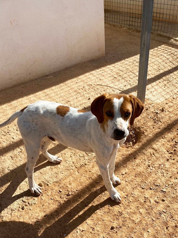 Es gibt viel was Tiere in Spanien erleiden müssen. Oft werden die Tiere nur als 'Arbeitsgeräte' genutzt und meistens sehr schlecht behandelt. Oft sehen wir, wie die Tiere getreten werden und das besonders auf Straßenhunde wenig Rücksicht genommen wird. Es gibt aber auch einige Menschen, die so sind wie wir, die sich Sorgen und kümmern. So wie der Retter von Durky. Dieser fand den Rüden an der Autobahn streunend, hielt an und nahm ihn mit. Er fuhr direkt zum nächsten Supermarkt um Futter für seinen neuen Mitfahrer zu kaufen und um Hilfe zu bitten. Dort wurde ihm dann geraten in unser Tierheim zu fahren und so kam Durky am Ende zu uns. Durky ist sehr nett und zugänglich aber auch Pointertypisch aktiv. Interessenten sollten sich über die Eigenschaften der Rasse Pointer informieren.