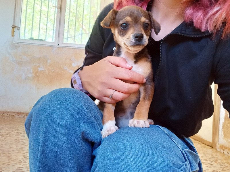 Shaki und ihre Schwester Chia stammen aus einem ungewollten Wurf und sind gleich ganz jung im Tierheim gelandet. Die beiden kleinen Mäuse sind wie alle Welpen super lustig und verspielt. Man bekommt einfach gute Laune, wenn sie neue Dinge entdecken und dabei die Stirn in Falten legen : ) Vermutlich werden die beiden keine Riesen werden, aber ein Überraschungsei sind sie trotzdem. Shaki ist etwas zierlicher als ihre Schwester und auch ein bisschen größer. Shaki ist noch jung und muss das Hunde 1x1 noch lernen, so wünschen wir uns Menschen, denen bewusst ist, dass ein junger Hund wie ein kleines Kind Zuwendung, Zeit und Erziehung benötigt und dies besonders im ersten Lebensjahr etwas Arbeit für die neue Familie bedeuten kann. Als Belohnung dafür erlebt man natürlich auch viele schöne Momente mit dem neuen Familienmitglied.