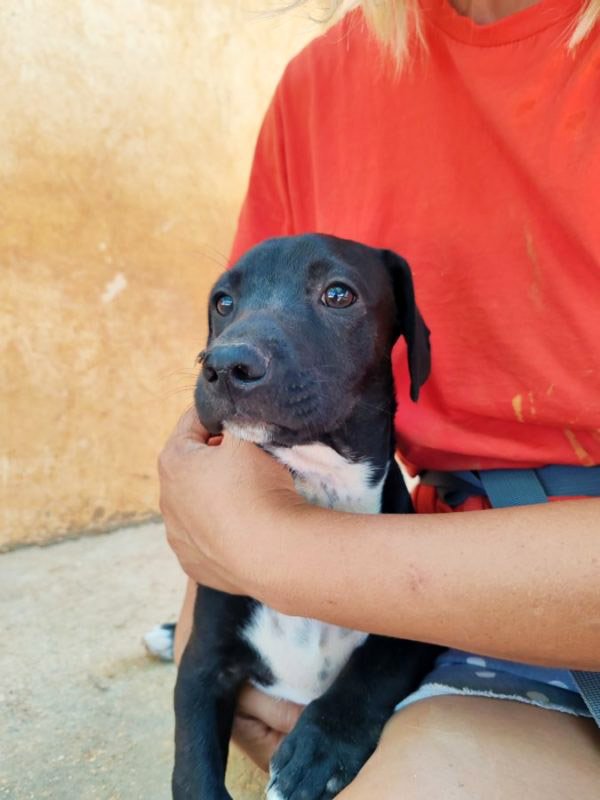 Und schon wieder kleine Welpen: hier kommt die Kartonbande :) Kuzko wurde mit seinen Geschwistern einfach auf der Straße ausgesetzt. Irgendjemand hatte Mitleid mit den kleinen Würmchen und hat sie ins Tierheim gebracht und dort leben sie nun seit dem 31.Mai. Kuzko ist schwarz mit einem weißen Latz und schwarzen Punkten. Zu seinem Glück sucht er nun bloß noch ein eigenes Zuhause, in dem man die Welt mit ihm entdecken möchte und ihn nie wieder alleine lässt. Kuzko ist noch jung und muss das Hunde 1x1 noch lernen und so wünschen wir uns Menschen, denen bewusst ist, dass ein junger Hund wie ein kleines Kind Zuwendung, Zeit und Erziehung benötigt und dies besonders im ersten Lebensjahr etwas Arbeit für die neue Familie bedeuten kann. Als Belohnung dafür erlebt man natürlich auch viele schöne Momente mit dem neuen Familienmitglied.