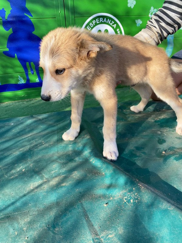 Arturo und seine Geschwister sind noch so klein und unschuldig und trotzdem hat man sie einfach weggeworfen wie Müll. Die Mitarbeiter der Albergue bekamen einen Anruf, dass inmitten eines Feldes kleine Welpen in einem sehr schlechten Zustand liegen würden. Sie waren alle Hautkrank und völlig verzweifelt, noch so klein, sollten sie schon alleine ohne ihre Mutter überleben müssen… Arturo ist der einzige Rüde und auch ganz blond, während seine Schwestern beide schwarz-weißes Fell haben. Schön wäre es, wenn sich schnell eine liebe Familie für den kleinen Mann findet, damit er auch einmal glücklich sein kann und die Traurigkeit aus seinen Augen verschwindet. Arturo ist noch jung und muss das Hunde 1x1 noch lernen und so wünschen wir uns Menschen, denen bewusst ist, dass ein junger Hund wie ein kleines Kind Zuwendung, Zeit und Erziehung benötigt und dies besonders im ersten Lebensjahr etwas Arbeit für die neue Familie bedeuten kann. Als Belohnung dafür erlebt man natürlich auch viele schöne Momente mit dem neuen Familienmitglied. Interessenten solten sich über die Eigneschaften von Huskys informieren.