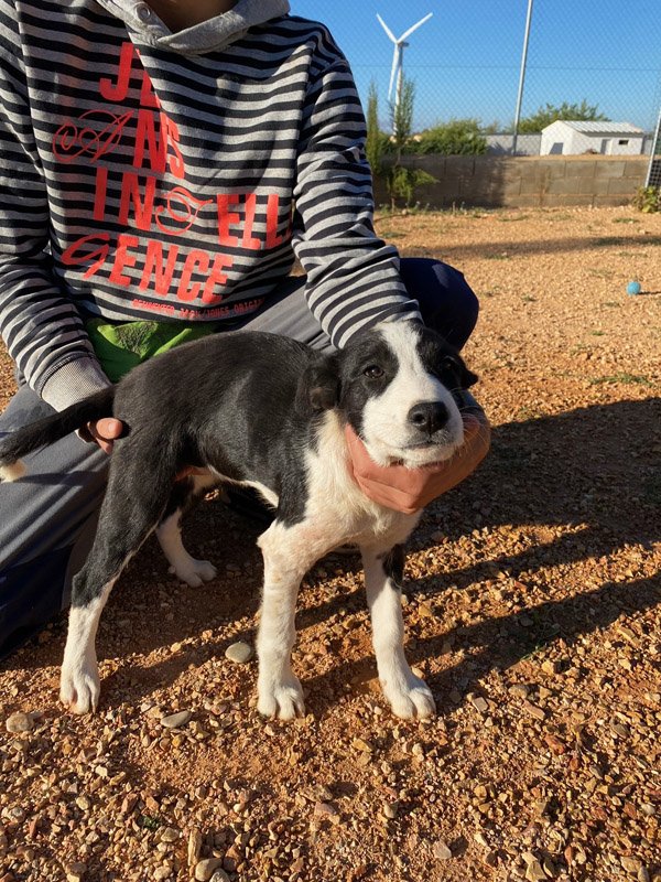 Blue und ihre Geschwister sind noch so klein und unschuldig und trotzdem hat man sie einfach weggeworfen wie Müll. Die Mitarbeiter der Albergue bekamen einen Anruf, dass inmitten eines Feldes kleine Welpen in einem sehr schlechten Zustand lagen. Sie waren alle Hautkrank und völlig verzweifelt, noch so klein sollten sie schon alleine ohne ihre Mutter überleben müssen… Alle wurden mittlerweile erfolgreich behandelt, was man an ihrem schönen Fell auch sehen kann. Blue ist etwas kleiner als ihr Bruder und hat eine schöne schwarz-weiße Zeichnung, ihr Fell ist dabei etwas kürzer als das ihrer Schwester Thilla. Aber auch ihre Augen sind voller Traurigkeit. Noch nie hat erfahren, wie es sein würde, ein Zuhause zu haben oder in einem weichen, kuscheligen Körbchen einzuschlafen. Sie hat kein eigenes Spielzeug oder jemanden, an den sie sich kuscheln kann. All das wünschen wir uns so sehr für die kleine Blue iund wünschen uns, dass sie schnell eine liebvolle Famile finden kann. Blue ist noch jung und muss das Hunde 1x1 noch lernen und so wünschen wir uns Menschen, denen bewusst ist, dass ein junger Hund wie ein kleines Kind Zuwendung, Zeit und Erziehung benötigt und dies besonders im ersten Lebensjahr etwas Arbeit für die neue Familie bedeuten kann. Als Belohnung dafür erlebt man natürlich auch viele schöne Momente mit dem neuen Familienmitglied. Interessenten solten sich über die Eigneschaften von Huskys informieren.
