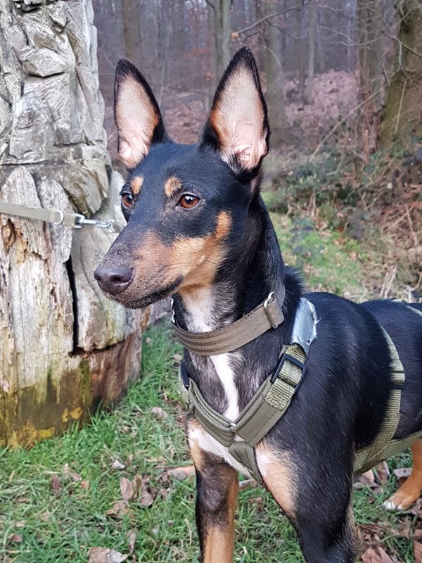 Desi hat sich seit Dezember in ihrer Pflegefamilie ganz toll entwickelt und von ihren anfänglichen Unsicherheiten ist fast nichts mehr zu spüren. Im Gegenteil – Desi muss in vielen Situationen inzwischen eher etwas ausgebremst werden, damit sie nicht zu übermütig wird. Auch das Thema Impulskontrolle steht noch auf ihrem Erziehungsplan. Desi könnte auch ein Podenco Orito-(Mix) sein und sie verfügt über einen ausgeprägten Jagdtrieb. Dementsprechend sollten ihre neuen (hundeerfahrenen) Menschen motiviert sein, ausgiebig den Rückruf mit ihr zu trainieren und es sollte ein Garten vorhanden sein oder eingezäunte Möglichkeiten zum Freilauf geben. Die kleine Maus ist ein sehr aktiver Hund und ebensolche Begleiter suchen wir für sie – lange Spaziergänge mit ausreichend Zeit zum Mäusebuddeln, schnüffeln und kleinen Übungen müssten unbedingt zum Tagesprogramm gehören. Desi hat inzwischen erste Agilitytrainingsstunden absolviert, woran sie sehr viel Spaß hatte und dies oder ähnliches könnte fortgeführt werden, um sie auch kopfmäßig auszulasten. Wird der hübschen Hundedame all dies ermöglicht bekommt man eine ganz tolle vierbeinige Begleiterin!