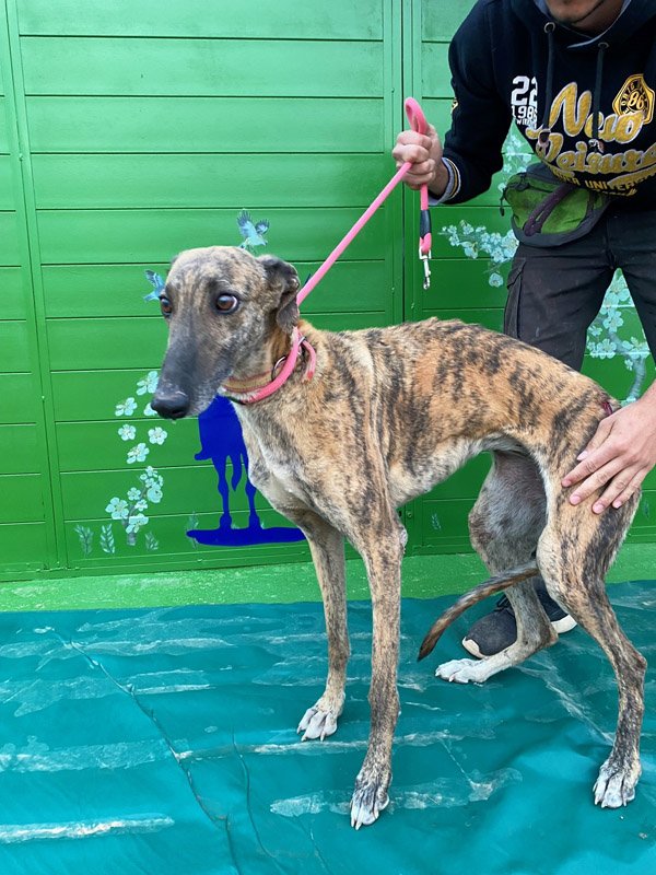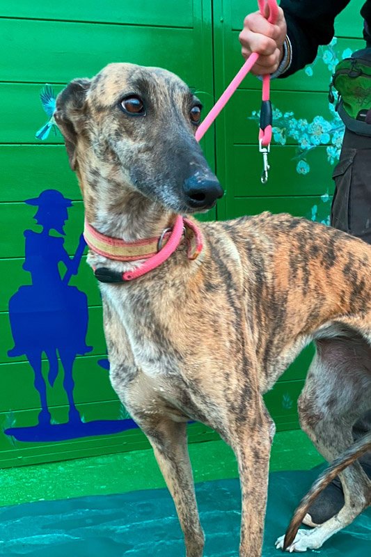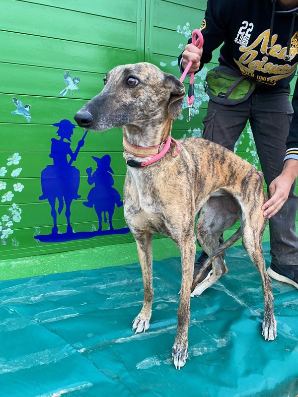 Auch Chupita war in den Augen von ihrem ehemaligem Besitzer nicht mehr zur Jagd zu gebrauchen und so wurde auch sie im Tierheim entsorgt. Das ist in Spanien fast immer so, zumindest bei den Jägern, die noch etwas Respekt für ihre Hunde haben. Oft werden die Galgos aber ausgesetzt oder sogar getötet. Für alle ist das Leben bei den Jägern voller Entbehrungen. Es gibt kein warmes Körbchen, liebevolle Worte und manchmal nicht mal regelmäßiges Futter. Die Galgos werden in Verschlägen verwahrt oder leben ohne jeden Schutz im Freien. Chupita bedeutet Schuss auf Deutsch. Sie ist sehr sozial zu anderen Hunden und auch freundlich zu uns Menschen. Allerdings ist sie noch etwas unsicher, was nach dem Erlebten auch völlig verständlich ist. Auch sie lernt gerade im Tierheim kennen, dass man nicht nur ein 'Arbeitsgerät' ist, sondern geliebt wird. Interessenten sollten sich über die Rasse Galgo espanol informieren.