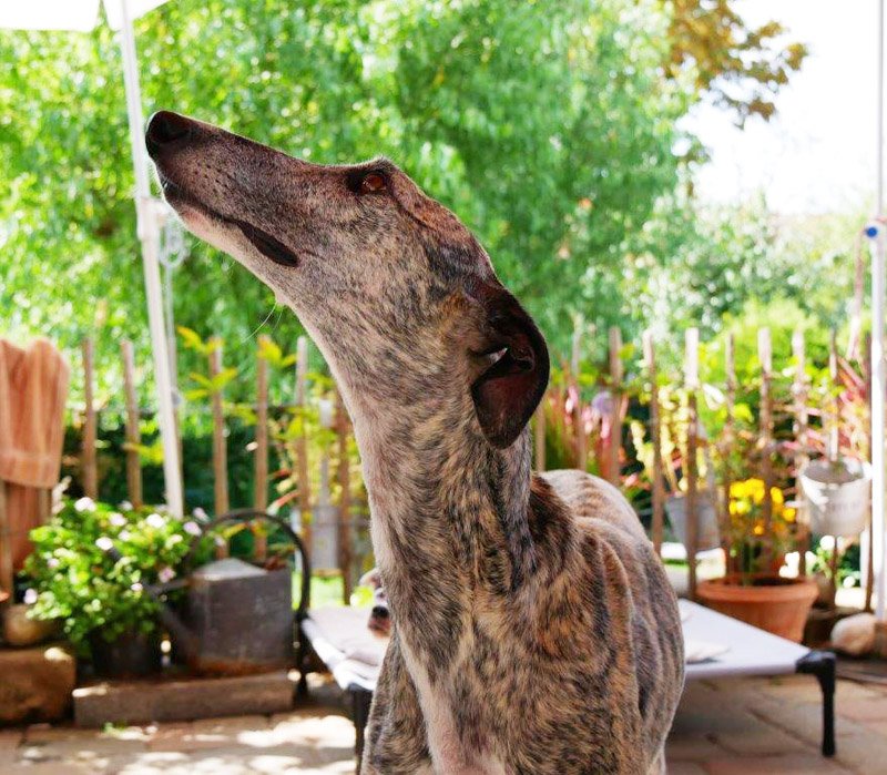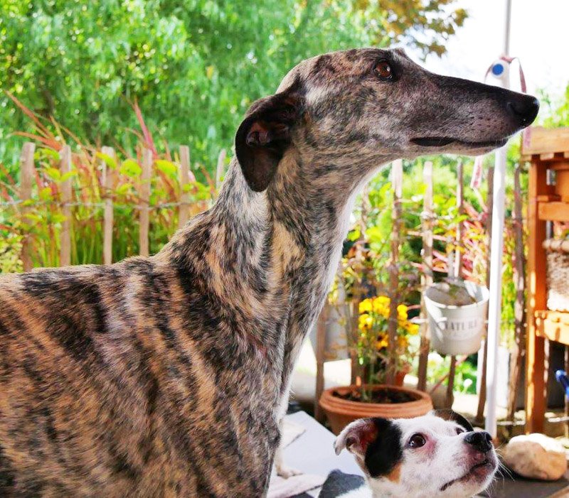 Bandera ist eine liebe, ausgeglichene, sehr anhängliche, lustige und neugierige Hündin. Sie fährt gerne im Auto mit, ist stubenrein, läuft Treppen, geht sehr gut an der Leine. Die soziale Bandera hat sich ohne Probleme in das gemischte Hunderudel eingefunden, auch der Pflegefamilie hat sie sofort vertraut. Sie zeigt keine Angst vor Männer, auch in typischen Alltagssituationen ist sie eine gute Begleiterin. Gerne würden wir Bandera zu einem Hundekumpel vermitteln, könnten uns aber auch vorstellen, dass sie als Einzelhund glücklich sein könnte, da sie die Nähe des Menschen sehr genießt. Ein gut eingezäunter Garte wäre schön. Sie bleibt in Hundegesellschaft schon 2-3 Stunden alleine. Die gute-Laune-Hündin ist ein wahrer Schatz und wünscht sich eine liebevolle Familie. Interessenten sollten sich über die Rasse Galgo espanol informieren.
