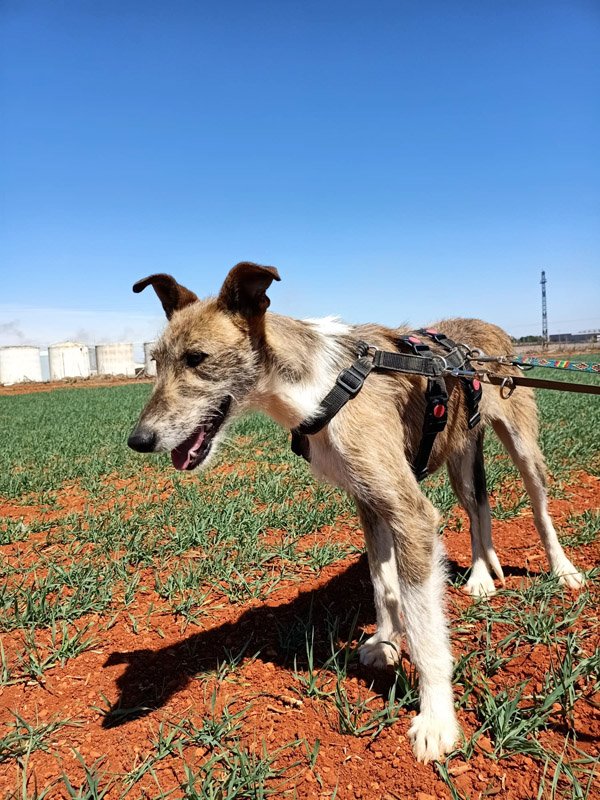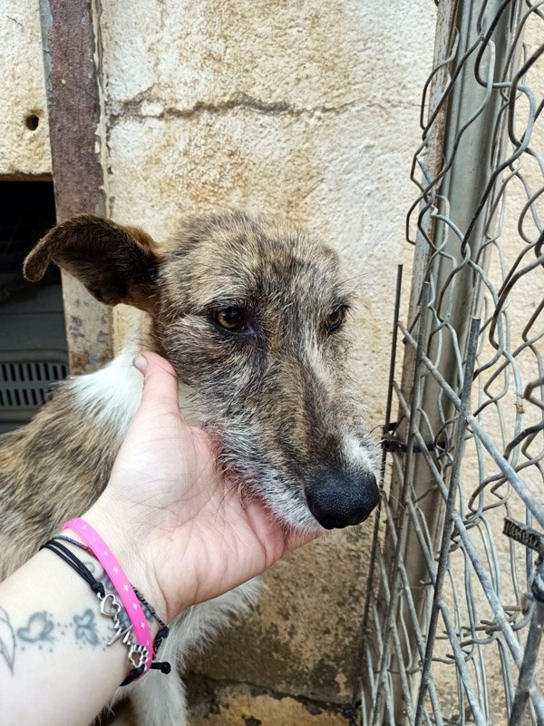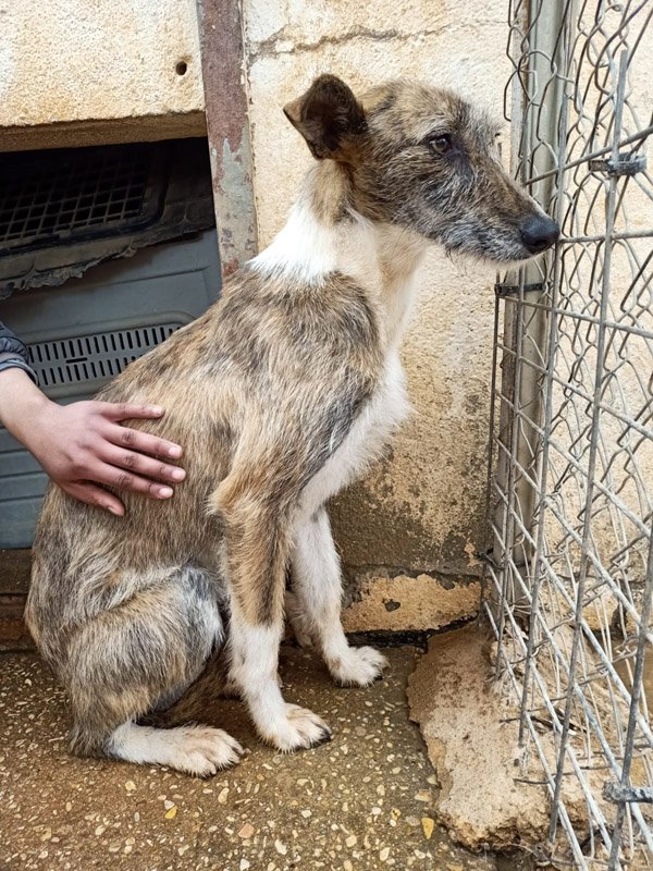 Die wunderhübsche Kira, die villeicht auch ein 'Galgo Español Barbudo' ist, ist schon seit Februar im Tierheim. Sie wurde immer wieder streunend außerhalb von Villarrobledo gesehen und man hatte oft versucht sie einzufangen. Am Ende ist das mit einem Käfig auch gelungen, der Hunger und das verlockende Futter waren wohl doch stärker, wie die große Angst. Wer weiß was die kleine Maus alles erleben musste. Generell ist das Überleben für Straßenhunde hart, aber vermutlich war Kira auch vorher bei einem Jäger und hat dort ihre schlechten Erfahrungen gemacht, die sie vor Menschen so zaudern lässt. Im Tierheim wird sie ganz langsam zutraulicher mit den Menschen die sie kennt, allerdings wird Kira noch eine Weile brauchen um das Erlebte zu vergessen. Ein souveräner Ersthund würde ihr sicher helfen, denn sie versteht sich prima mit allen Hunden. Allerdings braucht sie auch Menschen, die ihr die benötigte Zeit geben und viel Erfahrung sowie Geduld mitbringen. Interessenten sollten sich über die Rasse Galgo espanol informieren.