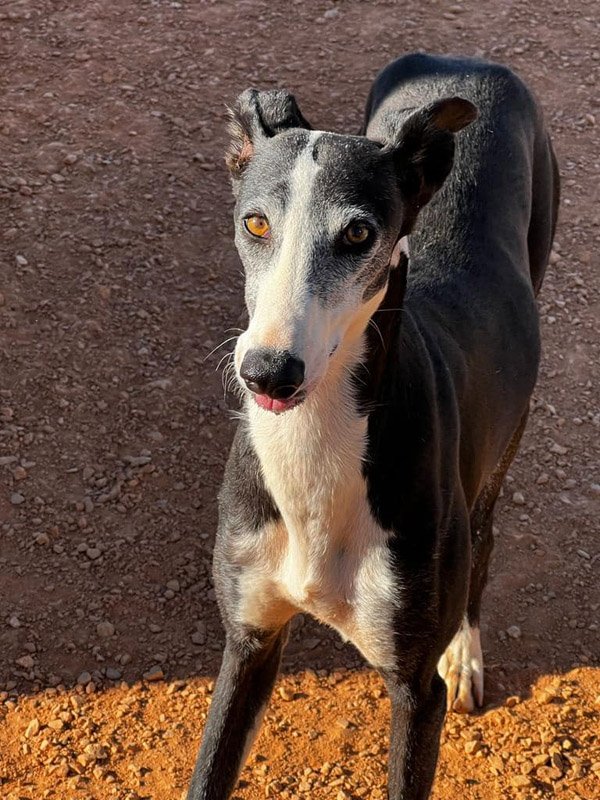 Videos im Hochformat: Careta, junge Galgohündin wünscht sich eine liebevolle Familie - Eindrücke aus der Albergue Careta, junge Galgohündin sucht ihre liebe Familie - Careta mit etwas mehr Mut - Eindrücke