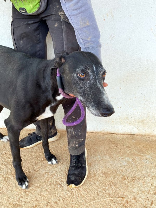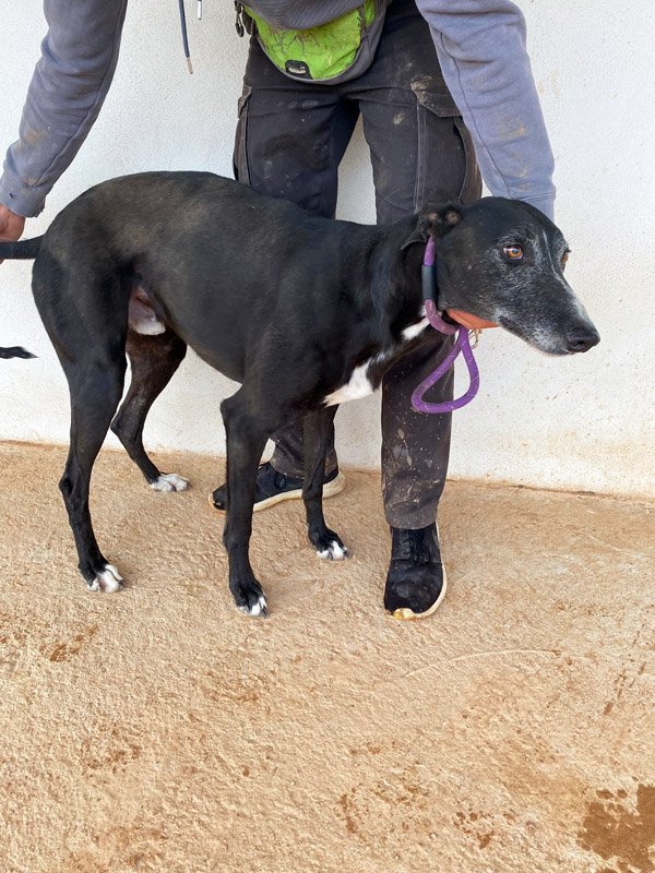 Auch Carlos wurde ohne Chip streunend im Umfeld von Vilarrobledo gefunden. Ein Jäger hatte ihn aufgenommen und ins Tierheim gebracht. Der hübsche schwarze Rüde ist sehr sozial mit anderen Hunden und auch dankbar für jede Streicheleinheit die er von den Mitarbeitern bekommt. Carlos wünscht sich eine liebevolle Familie. Interessenten sollten sich über die Rasse Galgo espanol informieren.