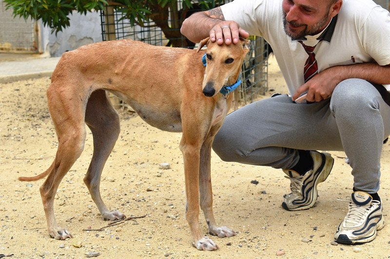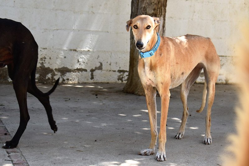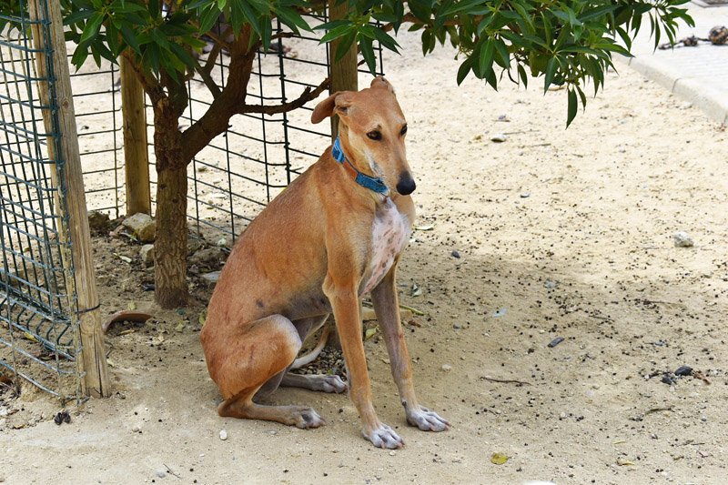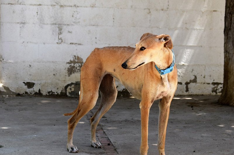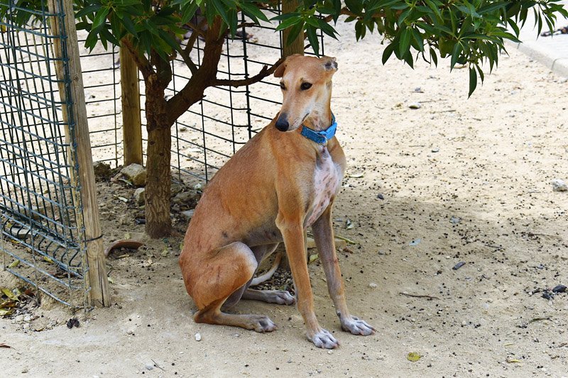 Ona ist seit dem 29. Mai im Tierheim. Sie wurde streunend allein in den Straßen von Jerez gefunden. Ona war in keinem guten Zustand, wer weiß was sie auf der Straße oder bei ihrem alten Besitzer erlebt hat. Sie war sehr dünn und hatte ganz stumpfes Fell, was sich aber schon sehr verbessert hat. Ona ist super-lieb mit anderen Hunden und mag auch Menschen nach einem Kennenlernen sehr. Interessenten sollten sich über die Rasse Galgo espanol informieren.