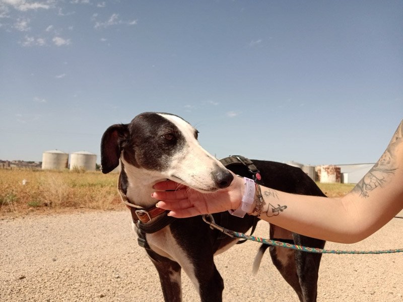 Leria wurde ganz allein ausserhalb von Villarrobledo gefunden. Die wunderschöne Hündin hatte entweder Glück und konnte einem Jäger entkommen oder wurde einfach ausgesetzt. In Spanien sind Galgos 'Arbeitsgeräte' und wenn diese nicht 'funktionieren', werden sie im Besten Fall ausgesetzt, oft aber auch einfach getötet. Leria ist sehr freundlich zu allen Menschen und versteht sich auch mit anderen Hunden gut. Interessenten sollten sich gut über die Rasse Galgo Espanol informieren.