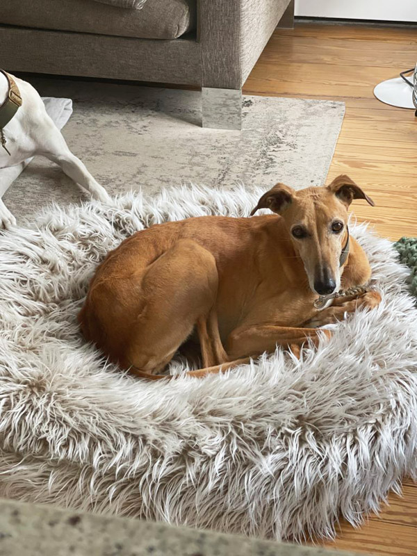 Pflegegalgo Zero hat mit seinem Charme und seiner Gelassenheit alle seine Menschen in den Bann gezogen und ruckzuck sein Zuhause gefunden.
