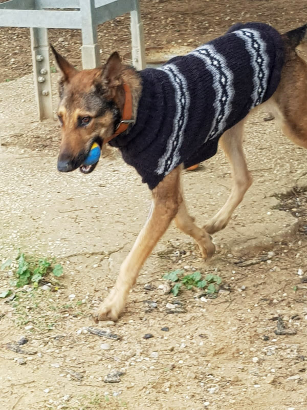 Und natürlich auch für unsere Patienten Mäntel z.B. für Suerte. Dank Euch konnten wir auch die Kosten für ihre Behandlung übernehmen. In Spanien ist es schon sehr kalt und ausgesprochen windig (das typische Wetter in der La Mancha)