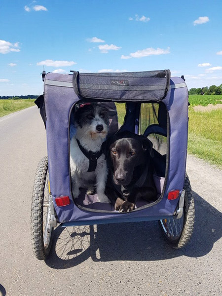 Beiden geht es gut - sie sind ein Herz und eine Seele. Sie lieben Spaziergänge, Urlaub an der dänischen Nordseeküste, Hundesport (bzw. den Belohnungskäse ;0)) und das Sofa.