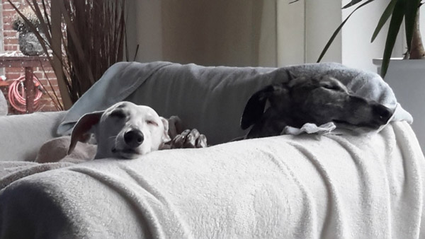 Wir haben unseren perfekten kleinen Galgo-Engel vor über 4 Jahren von eurem Verein bekommen. Sie ist auf einem Auge blind, hat Herzgeräusche, die Beinchen sind etwas wackelig und sie schreit regelmäßig alle 3 Stunden nach Futter... Wir lieben unsere Lilly mit ihren nunmehr 13 Jahren abgöttisch! Sie ist der folgsamste Hund und weiß auch ohne Worte was man von ihr möchte. Da sie anfangs extreme Angst vor Männern hatte, gab es nach einem halben Jahr ein älteres Kumpelchen... zur Pflege... klarer Fall von "Versagen" unsererseits... auch er ist permanenter Mitbewohner geworden! Der richtig grosse und super-sportliche Enzo ist von 'Galgo friends' und hat unsere Kleine aufgetaut. TOLL