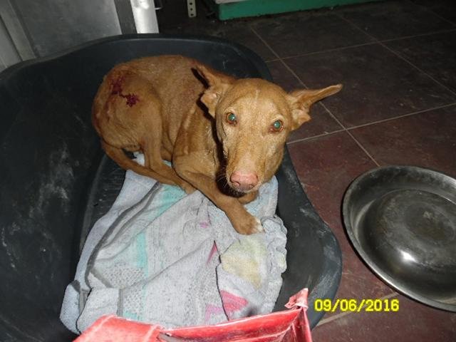 Bei Untersuchungen wurde dann festgestellt, das Logan fast taub ist und sehr schlecht sieht. Trotz seiner Behinderung kam er gut in seiner Pflegestelle bei Cari Zuhause auf dem Land zurecht. Er war dort weiterhin immer liebevoll im Rudel, verschmust und einfach nur ein toller Kerl. Im Frühling 2016 wendete sich auch in Caris Rudel das Blatt und Logan wurde nun schon mehrfach im Rudel bei Cari angegriffen, da er durch seine Behinderung in der Komunikation sehr eingeschränkt ist. Das hatte zur Folge, das Logan nun im Hospital in der Albergue ist, da er gestern von Caris Rudel schwer gebissen wurde. Der Kontakt zu anderen Hunden ist für Logan so wichtig, er genießt diesen sehr, orientiert sich an den anderen Hunden und daher leidet er nun sehr so alleine im Hospital. Daher möchten wir am liebsten ganz schnell einen Gandenbrotplatz mit liebevollen Hunden/Hund in Deutschland für ihn finden.