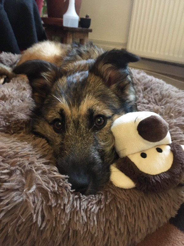 Junghund Bruno verblüffte uns völlig, in Spanien noch sehr ängstlich, scheint er sich nun in seinem Rudel völlig wohl und schon recht sicher zu fühlen.