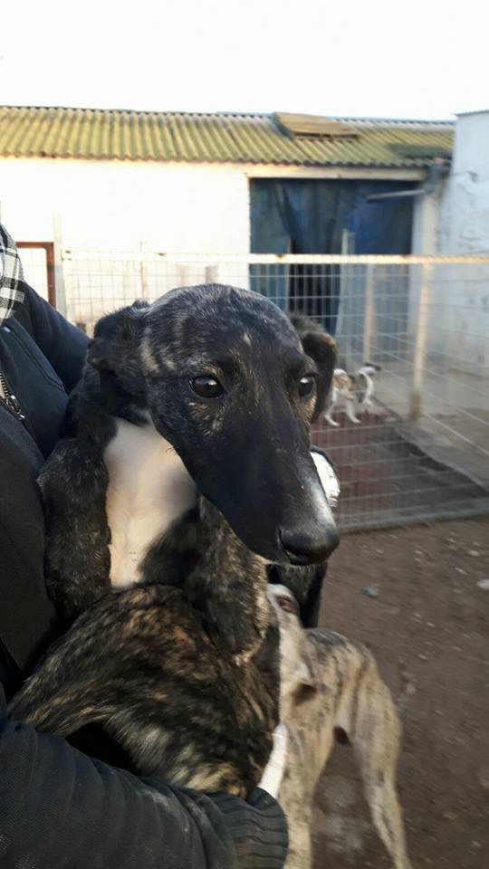 Morgens beim Putzen des Hospitales in der Albergue steckte jemand sein kleines Köpfchen durch die offene Hauptüre der Albergue- Ava. Die kleine Maus rannte direkt wieder hinaus als sie entdeckt wurde, aber da sie viel Hunger hatte wurde sie mit einer Nassfutter Spur in die Albergue hereingelockt, jemand versteckte sich im Hospital das neben der Hauptüre liegt und schloss diese als sie im kleinen Flur stand. Es wird vermutet, daß Ava die Schwester von Galgowelpe Gandhi ist, der auch in der Nähe der Albergue gesichert wurde, als dieser mit zwei erwachsenen Galgos unterwegs war. Ava könnte sich damals im hohen Gestrüpp versteckt haben und mit den Galgos geflüchtet sein. Alba war sich damals schon nicht sicher, ob dort noch ein kleiner Galgo mit dabei war. Es wird weiterhin versucht, die erwachsenen Galgos mit einer Lebendfalle und Futterstellen zu sichern. Hoffen wir, daß es bald gelingt.
