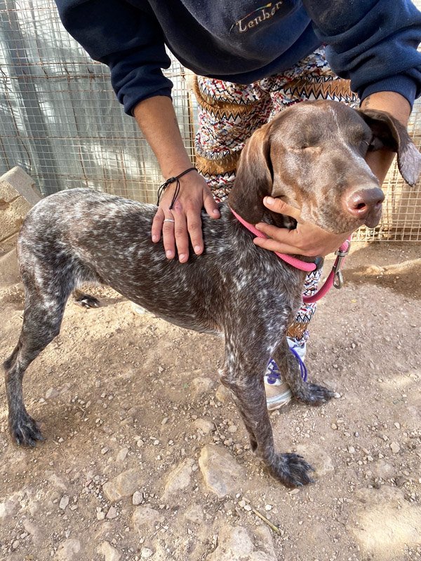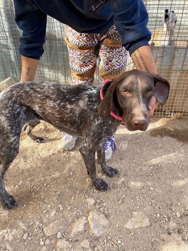 Trini wurde von Mitarbeitern der Albergue während eines Spaziergangs aufgefunden. Die arme Hündin hatte eine große, klaffende Wunde am Hals, die vereitert und mit Maden übersät war. Nicht auszudenken, welche Schmerzen Trini gehabt haben muss. Vermutlich wurde sie ausgesetzt und vorher ihr Chip herausgeschnitten. Eine fürchterliche, grausame Methode, die Spuren zum Besitzer der Hündin zu verwischen. Leider kommt dies häufig vor… Zum Glück wurde Trini gefunden und sie konnte sich bei den Mitarbeitern der Albergue, ein wundervolles Ehepaar mit kleiner Familie, erholen. Trini wurde medizinisch versorgt und bereits nach kurzer Zeit, ist die Wunde schon prima verheilt und die zuckersüße Patientin auf dem Weg der Besserung. Trini ist sehr menschenbezogen, was fast unglaublich erscheint, wenn man bedenkt, was Menschen ihr zugefügt haben. Ihr Vertrauen scheint ungebrochen und sie ist lieb, aktiv und fröhlich. Mit ihren Artgenossen versteht sie sich prima. Jetzt wünschen wir uns nur noch ein liebevolles Zuhause für die hübsche Hundedame :) Interessenten sollten sich über die Eigenschaften von Vorstehhunden informieren.