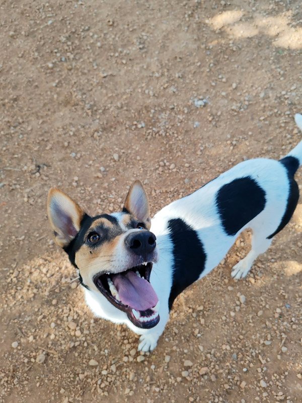 Guera wurde streunend aufgefunden und in die Perrera gebracht. Ein Chip war wie so oft nicht zu finden, aber es meldete sich auch kein Besitzer, der sie vermisste. Im Tierheim zeigt sich die schöne Tri-Color-Hündin von ihrer besten Seite. Sie läuft brav an der Leine und auch mit anderen Hunden versteht sich Guera gut. Sie geht stets freundlich und offen auf ihre Artgenossen zu. Zu den Mitarbeitern im Tierheim ist sie sehr liebevoll und kann von Streicheleinheiten gar nicht genug bekommen. Guera schmiegt sich so eng wie nur möglich an die Mitarbeiter, hält ganz still und genießt jede Berührung- um sich dann mit einem Küsschen zu bedanken. Guera ist sehr schlau und hat schnell gelernt, dass in den Taschen meist Leckerlis versteckt sind und ist dann immer besonders brav :) Interessenten sollten sich über die Eigenschaften der Bodeguero informieren.