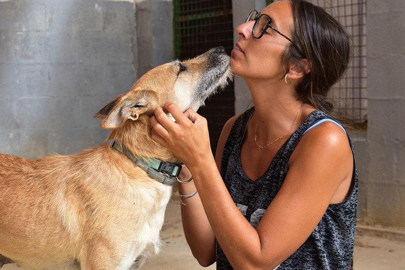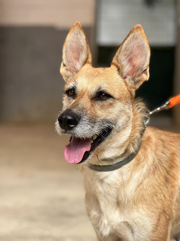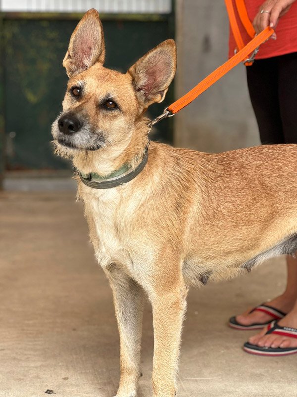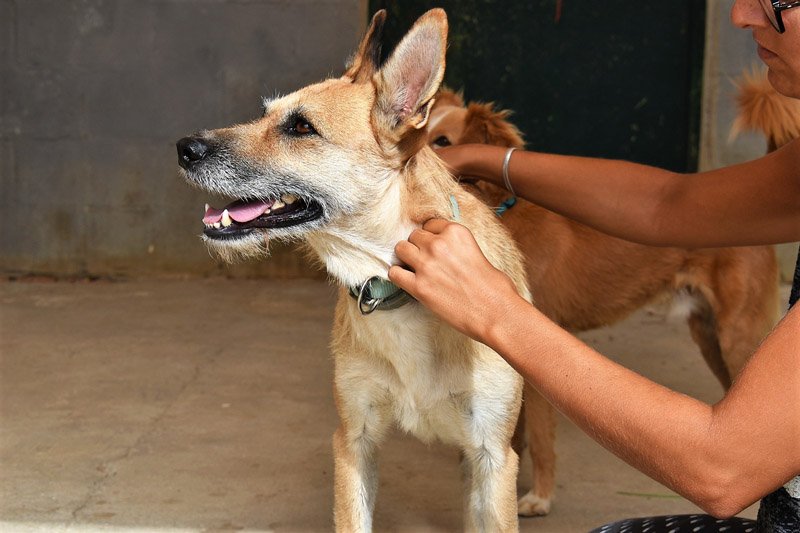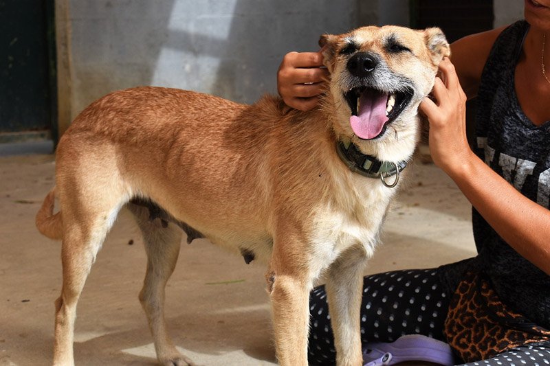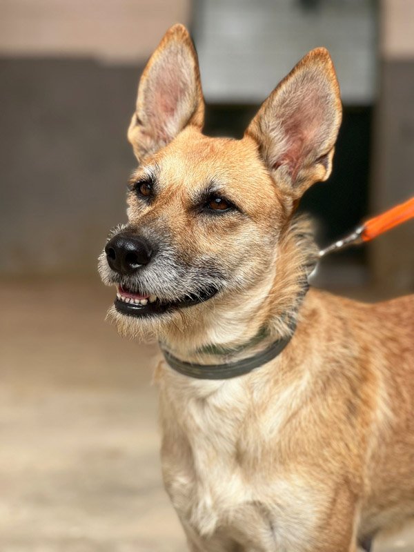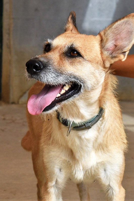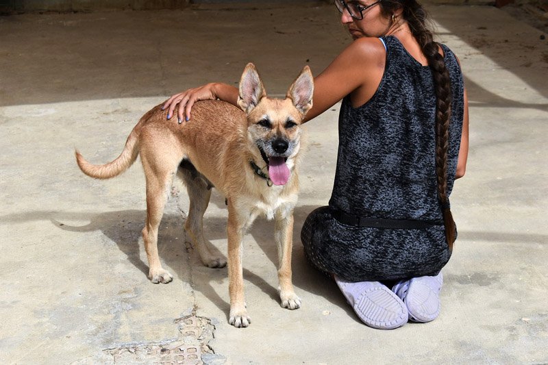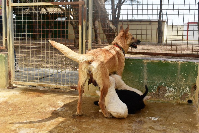 Belle ist die Mama der 'Wattebällchenbande' und seit dem 24. Mai im Refugio. Das Kimba hatte einen Anruf bekommen, weil eine Hündin im Garten einer Frau ihre Welpen bekommen hatte. Die Frau hatte sich schon einige Zeit um die Straßenhündin gekümmert, sie gefüttert und ihr frisches Wasser gegeben. Irgendwann ist Belle wohl in ihrer Not einen sicheren Platz für die Geburt ihrer Welpen zu haben, einfach bei der Frau geblieben. Sie hatte 12Welpen, aber draussen im Garten, ohne wirklichen Schutz. Belle und auch die Welpen waren voller Zecken und Flöhe und haben schlimm gehustet. Die Frau hat uns erzählt, dass Belle immer bei McDonalds im Dorf gewesen ist und die Menschen haben ihr Burger oder Essbares gekauft. Man gab ihr dann die Tüte und Belle hat alles in ihr Zuhause, dem Garten der Frau, gebracht und ganz sorgsam gegessen. Sie ist so schlau und weiß genau, was sie tun musste um zu Überleben. Belle hat sich im Tierheim rührend um ihre Kinder gekümmert, aber leider sind 6 an einem Virus gestorben. Es war eine schlimme Zeit voller Trauer. Belle ist jetzt wieder fröhlicher und folgt den Mitarbeitern auf Schritt und Tritt. Sie ist sehr gelehrig und wirklich treu. Sie verteilt immer ganz sanft Küsschen und liebt es sehr, wenn man ihr auch nur ein kleines bisschen Aufmerksamkeit schenkt.