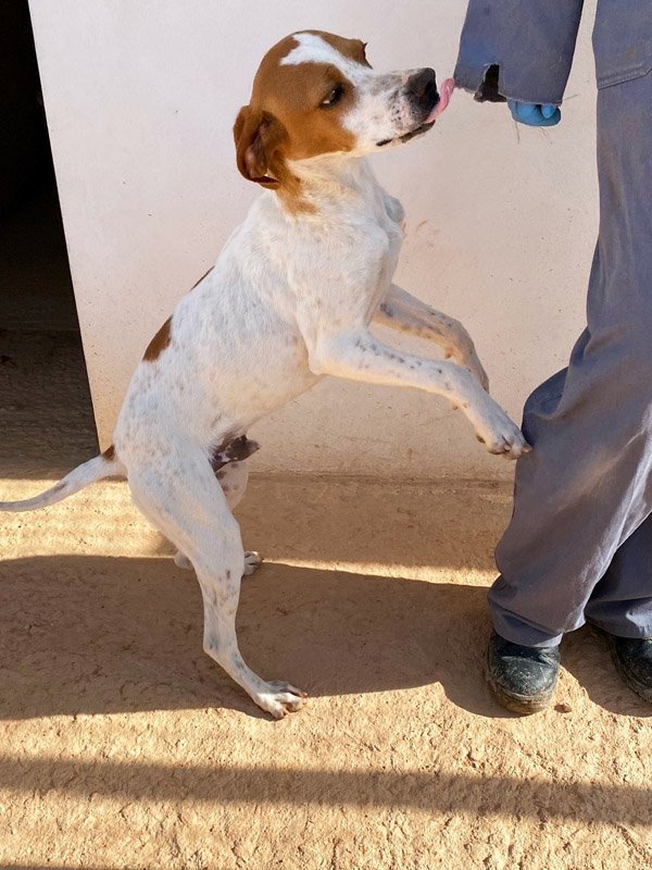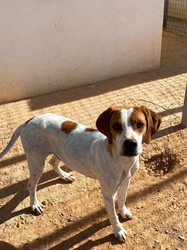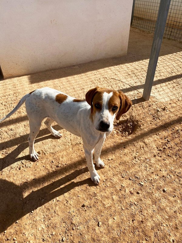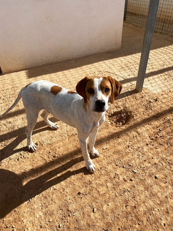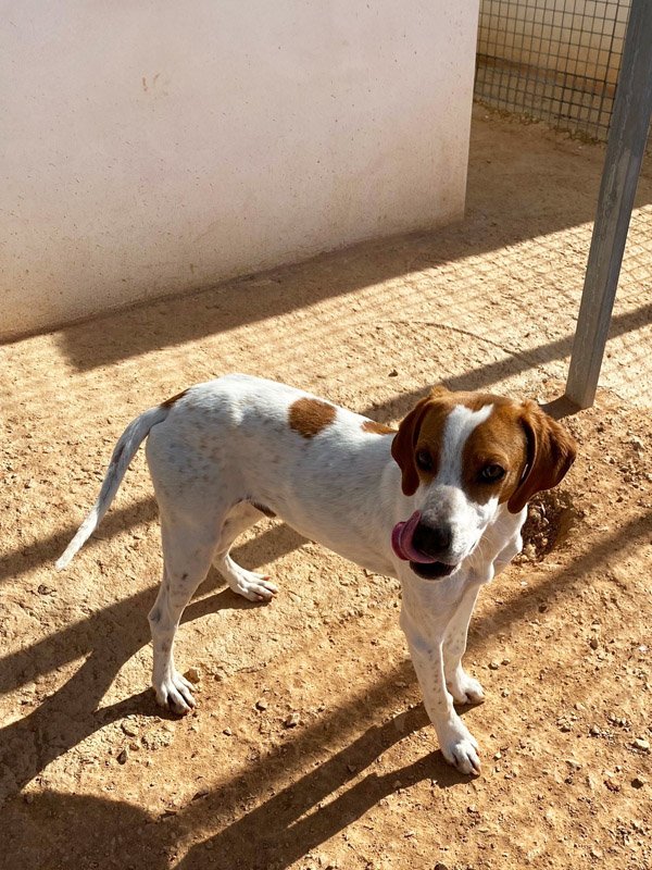 Es gibt viel was Tiere in Spanien erleiden müssen. Oft werden die Tiere nur als 'Arbeitsgeräte' genutzt und meistens sehr schlecht behandelt. Oft sehen wir, wie die Tiere getreten werden und das besonders auf Straßenhunde wenig Rücksicht genommen wird. Es gibt aber auch einige Menschen, die so sind wie wir, die sich Sorgen und kümmern. So wie der Retter von Durky. Dieser fand den Rüden an der Autobahn streunend, hielt an und nahm ihn mit. Er fuhr direkt zum nächsten Supermarkt um Futter für seinen neuen Mitfahrer zu kaufen und um Hilfe zu bitten. Dort wurde ihm dann geraten in unser Tierheim zu fahren und so kam Durky am Ende zu uns. Durky ist sehr nett und zugänglich aber auch Pointertypisch aktiv. Interessenten sollten sich über die Eigenschaften der Rasse Pointer informieren.