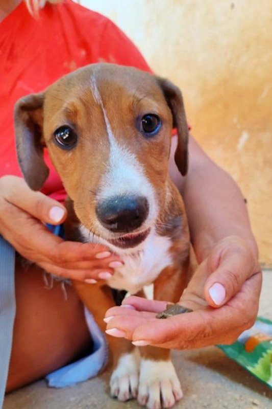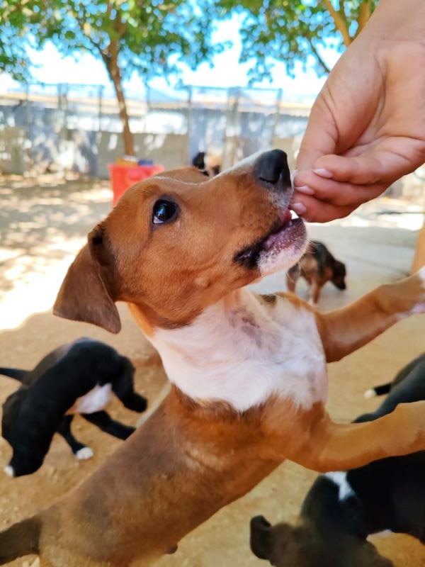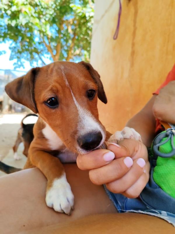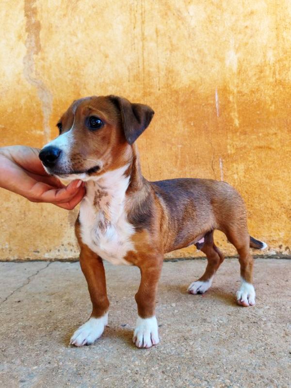Und schon wieder kleine Welpen: hier kommt die Kartonbande :) Duende bedeutet auf Deutsch so etwas wie Elf oder Kobold. Und dieser kleine 'Kobold' wurde mit seinen Geschwistern einfach auf der Straße ausgesetzt. Irgendjemand hatte Mitleid mit den kleinen Würmchen und hat sie ins Tierheim gebracht und dort leben sie nun seit dem 31.Mai. Duende ist rehbraun und hat eine weisse Zeichnung an der Nase, die ihn unverkennbar macht. Zu seinem Glück sucht er nun bloß noch ein eigenes Zuhause, in dem man die Welt mit ihm entdecken möchte und ihn nie wieder alleine lässt. Duende ist noch jung und muss das Hunde 1x1 noch lernen und so wünschen wir uns Menschen, denen bewusst ist, dass ein junger Hund wie ein kleines Kind Zuwendung, Zeit und Erziehung benötigt und dies besonders im ersten Lebensjahr etwas Arbeit für die neue Familie bedeuten kann. Als Belohnung dafür erlebt man natürlich auch viele schöne Momente mit dem neuen Familienmitglied.