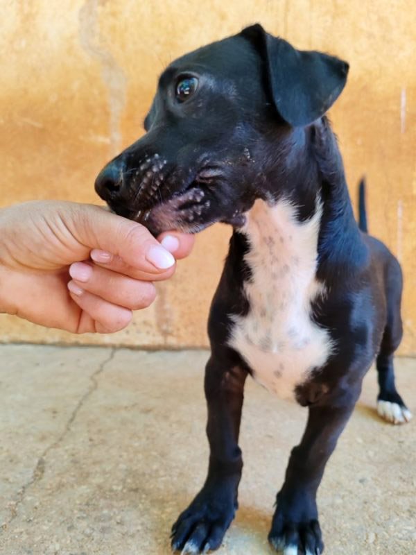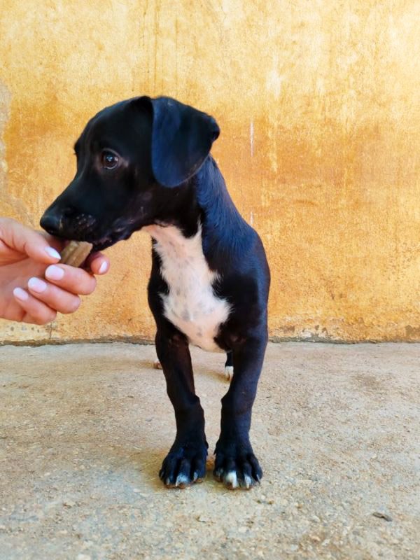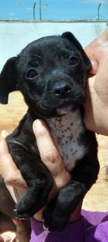 Und schon wieder kleine Welpen: hier kommt die Kartonbande :) Kuzko wurde mit seinen Geschwistern einfach auf der Straße ausgesetzt. Irgendjemand hatte Mitleid mit den kleinen Würmchen und hat sie ins Tierheim gebracht und dort leben sie nun seit dem 31.Mai. Kuzko ist schwarz mit einem weißen Latz und schwarzen Punkten. Zu seinem Glück sucht er nun bloß noch ein eigenes Zuhause, in dem man die Welt mit ihm entdecken möchte und ihn nie wieder alleine lässt. Kuzko ist noch jung und muss das Hunde 1x1 noch lernen und so wünschen wir uns Menschen, denen bewusst ist, dass ein junger Hund wie ein kleines Kind Zuwendung, Zeit und Erziehung benötigt und dies besonders im ersten Lebensjahr etwas Arbeit für die neue Familie bedeuten kann. Als Belohnung dafür erlebt man natürlich auch viele schöne Momente mit dem neuen Familienmitglied.