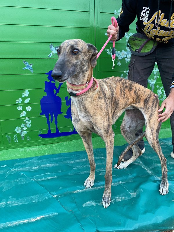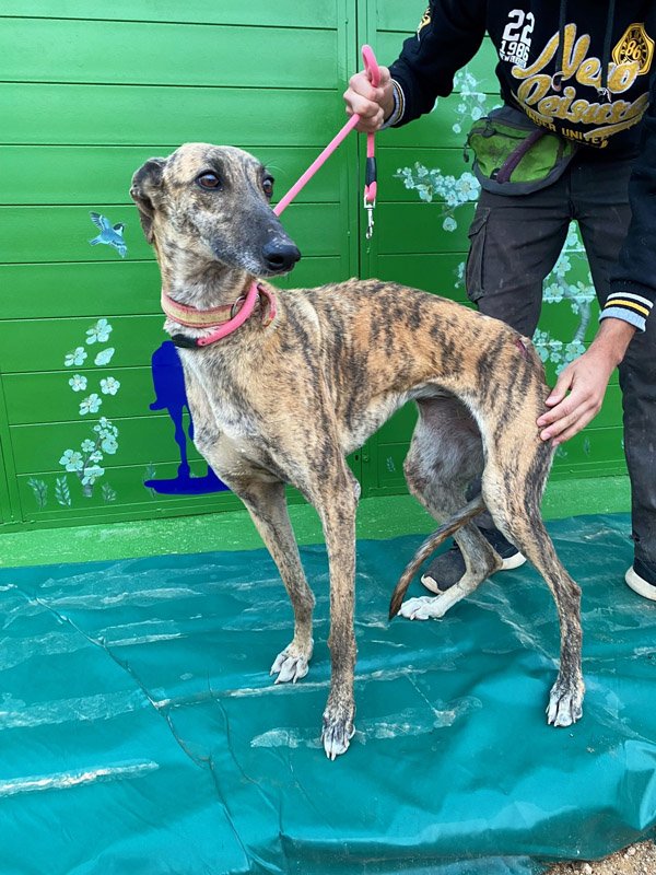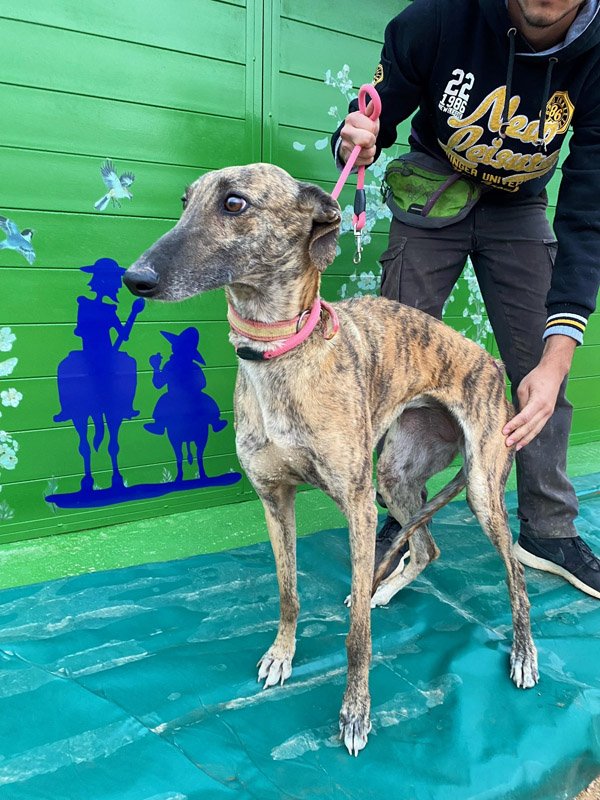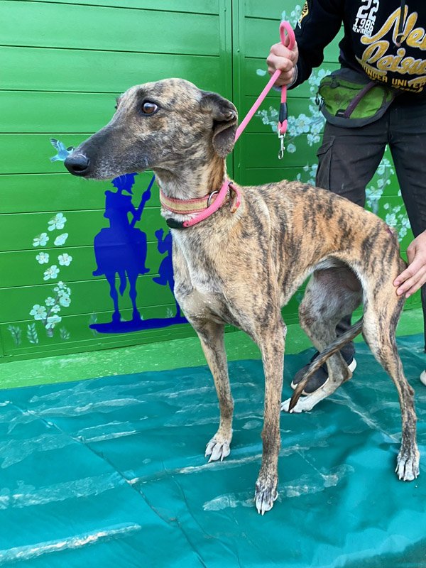 Auch Chupita war in den Augen von ihrem ehemaligem Besitzer nicht mehr zur Jagd zu gebrauchen und so wurde auch sie im Tierheim entsorgt. Das ist in Spanien fast immer so, zumindest bei den Jägern, die noch etwas Respekt für ihre Hunde haben. Oft werden die Galgos aber ausgesetzt oder sogar getötet. Für alle ist das Leben bei den Jägern voller Entbehrungen. Es gibt kein warmes Körbchen, liebevolle Worte und manchmal nicht mal regelmäßiges Futter. Die Galgos werden in Verschlägen verwahrt oder leben ohne jeden Schutz im Freien. Chupita bedeutet Schuss auf Deutsch. Sie ist sehr sozial zu anderen Hunden und auch freundlich zu uns Menschen. Allerdings ist sie noch etwas unsicher, was nach dem Erlebten auch völlig verständlich ist. Auch sie lernt gerade im Tierheim kennen, dass man nicht nur ein 'Arbeitsgerät' ist, sondern geliebt wird. Interessenten sollten sich über die Rasse Galgo espanol informieren.