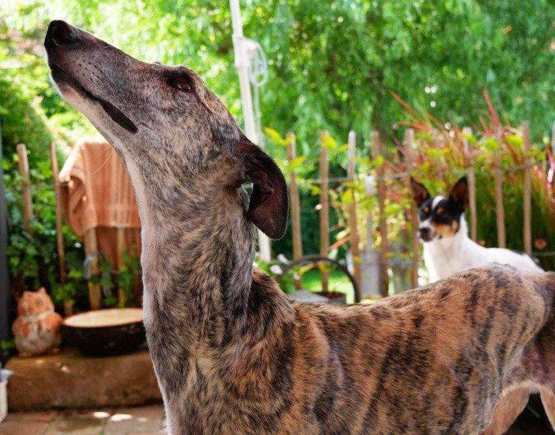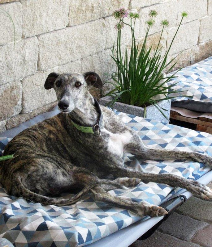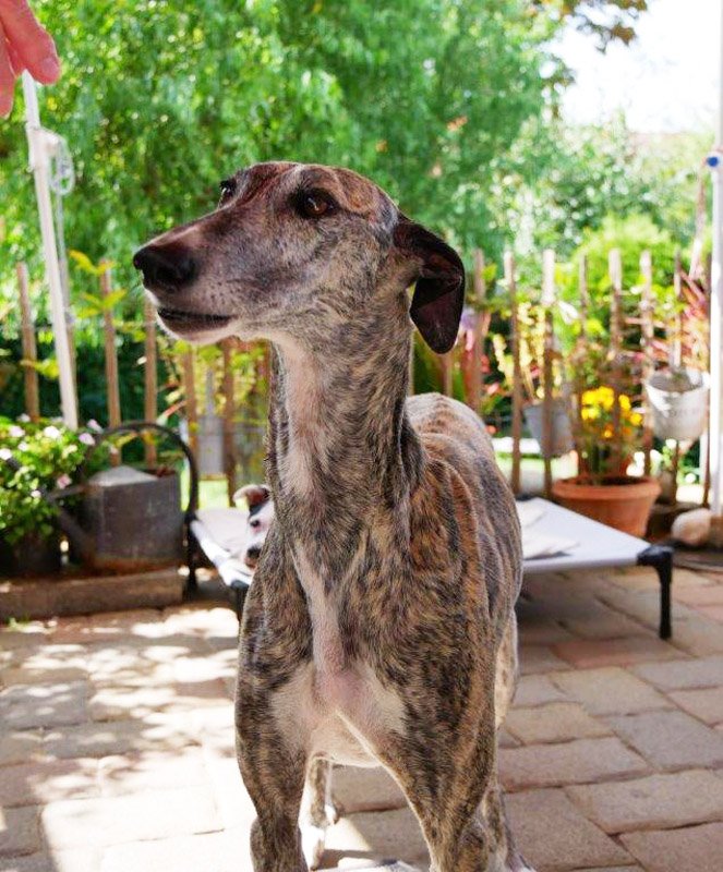 Bandera ist eine liebe, ausgeglichene, sehr anhängliche, lustige und neugierige Hündin. Sie fährt gerne im Auto mit, ist stubenrein, läuft Treppen, geht sehr gut an der Leine. Die soziale Bandera hat sich ohne Probleme in das gemischte Hunderudel eingefunden, auch der Pflegefamilie hat sie sofort vertraut. Sie zeigt keine Angst vor Männer, auch in typischen Alltagssituationen ist sie eine gute Begleiterin. Gerne würden wir Bandera zu einem Hundekumpel vermitteln, könnten uns aber auch vorstellen, dass sie als Einzelhund glücklich sein könnte, da sie die Nähe des Menschen sehr genießt. Ein gut eingezäunter Garte wäre schön. Sie bleibt in Hundegesellschaft schon 2-3 Stunden alleine. Die gute-Laune-Hündin ist ein wahrer Schatz und wünscht sich eine liebevolle Familie. Interessenten sollten sich über die Rasse Galgo espanol informieren.