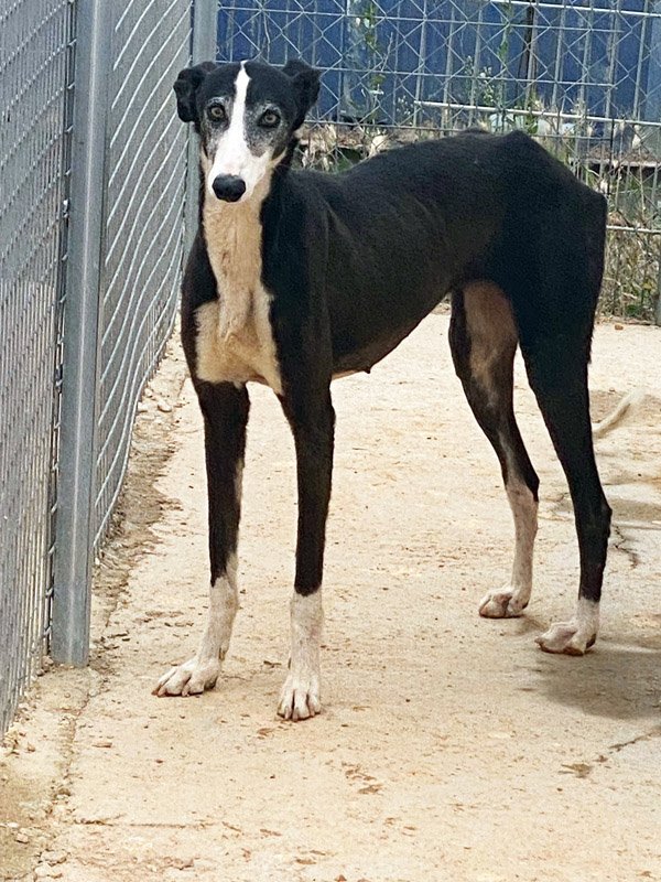 Videos im Hochformat: Careta, junge Galgohündin wünscht sich eine liebevolle Familie - Eindrücke aus der Albergue Careta, junge Galgohündin sucht ihre liebe Familie - Careta mit etwas mehr Mut - Eindrücke