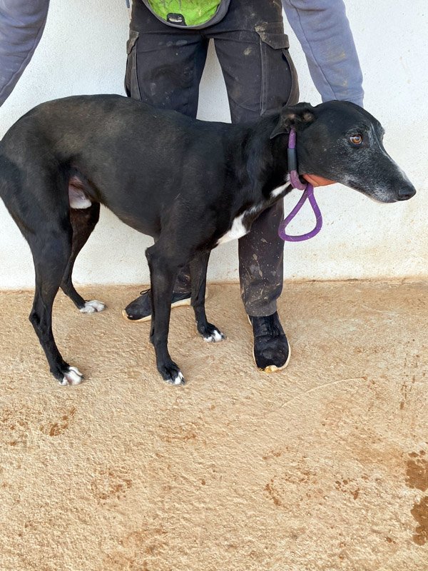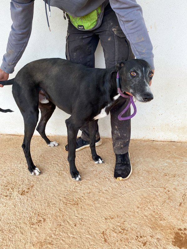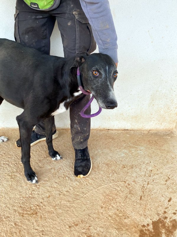 Auch Carlos wurde ohne Chip streunend im Umfeld von Vilarrobledo gefunden. Ein Jäger hatte ihn aufgenommen und ins Tierheim gebracht. Der hübsche schwarze Rüde ist sehr sozial mit anderen Hunden und auch dankbar für jede Streicheleinheit die er von den Mitarbeitern bekommt. Carlos wünscht sich eine liebevolle Familie. Interessenten sollten sich über die Rasse Galgo espanol informieren.