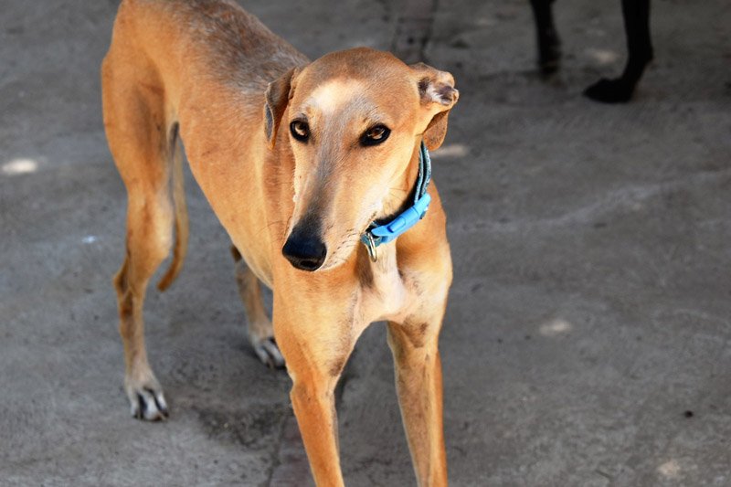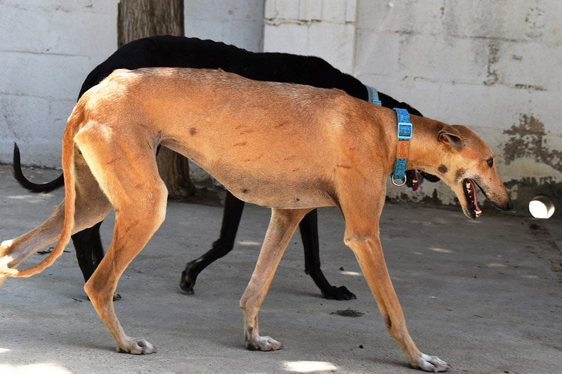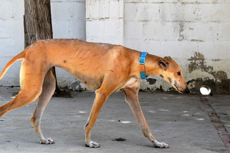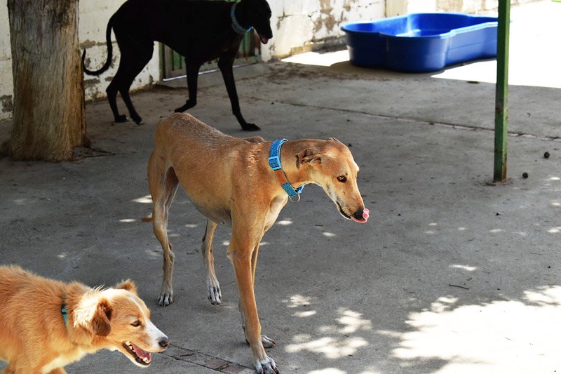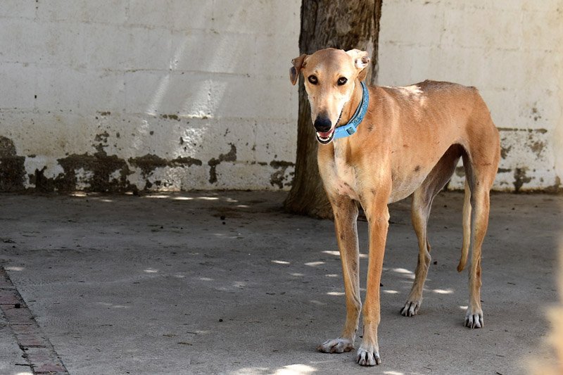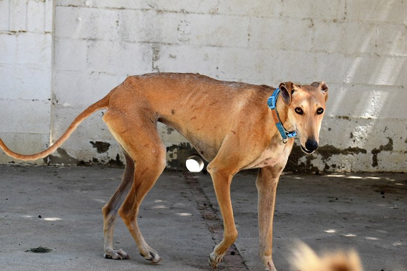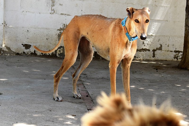 Ona ist seit dem 29. Mai im Tierheim. Sie wurde streunend allein in den Straßen von Jerez gefunden. Ona war in keinem guten Zustand, wer weiß was sie auf der Straße oder bei ihrem alten Besitzer erlebt hat. Sie war sehr dünn und hatte ganz stumpfes Fell, was sich aber schon sehr verbessert hat. Ona ist super-lieb mit anderen Hunden und mag auch Menschen nach einem Kennenlernen sehr. Interessenten sollten sich über die Rasse Galgo espanol informieren.