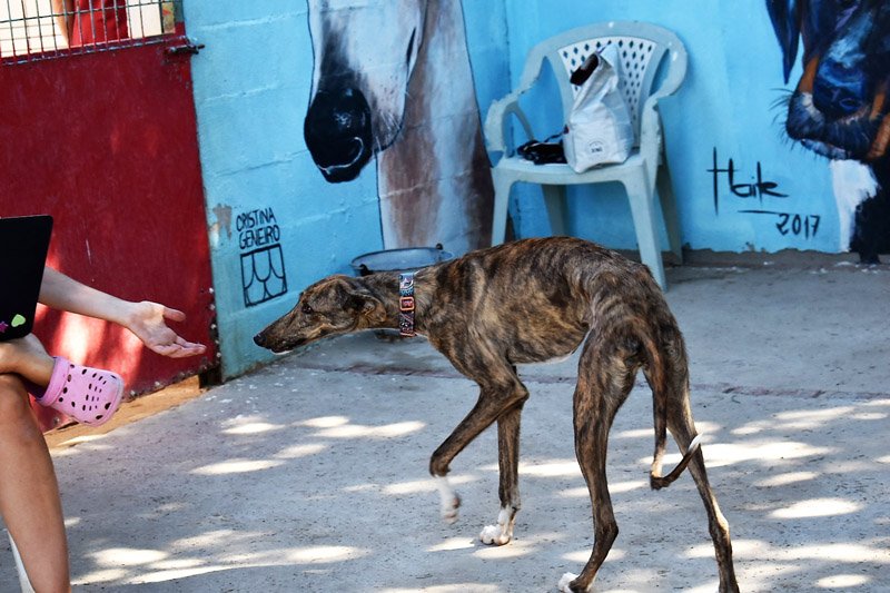 Pinky wird noch bist Ende August auf einer Pflegestelle von Kimba sein und dann muss sie ins Tierheim ziehen. Sie wurde in 'Conil' gefunden, dass ist ein kleines Dorf an der Küste. Im Sommer ist es wie überall am Meer sehr überlaufen, es gibt viele Tagestouristen und so sind auch die Straßen immer voll. Es ist sehr gefährlich für die Hunde, keiner möchte sie dort und auch auf den Straßen nimmt man kaum Rücksicht. Vermutlich wurde Pinky ausgesetzt oder sie hat es geschafft und ist einem Jäger entkommen. Wie lange sie alleine unterwegs war, können wir nur raten, aber sie war unglaublich dünn. Pinky ist noch sehr jung, gerade mal ein halbes Jahr und somit wird sie ihren schlimmen Start ins Leben bald vergessen haben. Anfangs ist sie bei fremden Menschen noch vorsichtig, aber wenn Pinky herausgefunden hat, dass man Leckerlies in den Taschen mitgebracht hat, ist das 'Eis' schnell gebrochen. Pinky hat alle Herzen im Refugio gebrochen, alle sind verliebt in die freundliche, kleine Hündin. Hat es Sie vielleicht auch erwischt? Pinky ist noch jung und muss das Hunde 1x1 noch lernen und so wünschen wir uns Menschen, denen bewusst ist, dass ein junger Hund wie ein kleines Kind Zuwendung, Zeit und Erziehung benötigt und dies besonders im ersten Lebensjahr etwas Arbeit für die neue Familie bedeuten kann. Als Belohnung dafür erlebt man natürlich auch viele schöne Momente mit dem neuen Familienmitglied. Interessenten sollten sich über die Rasse Galgo espanol informieren.