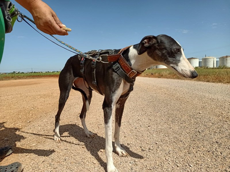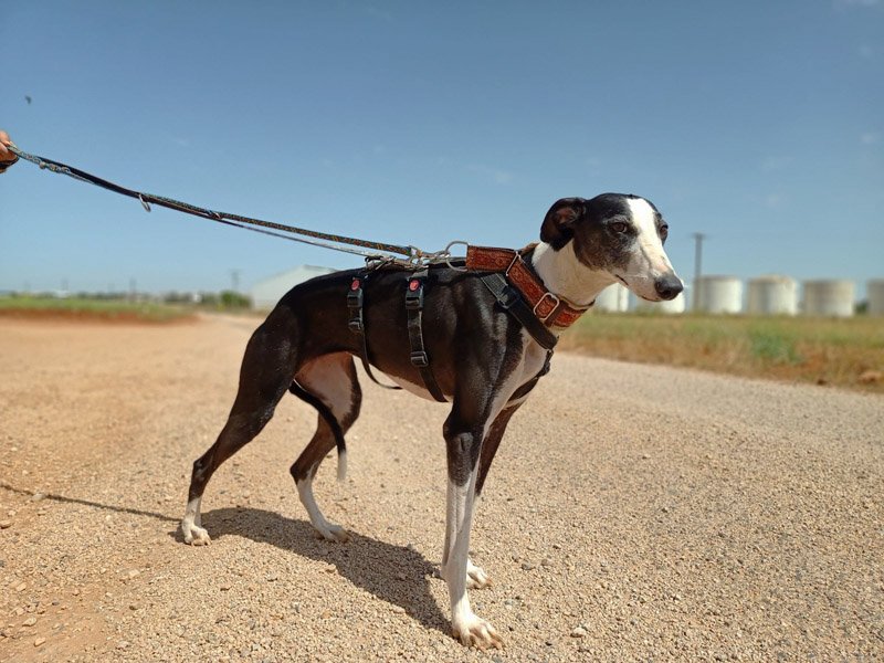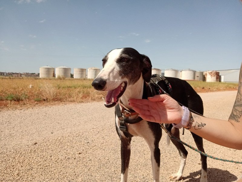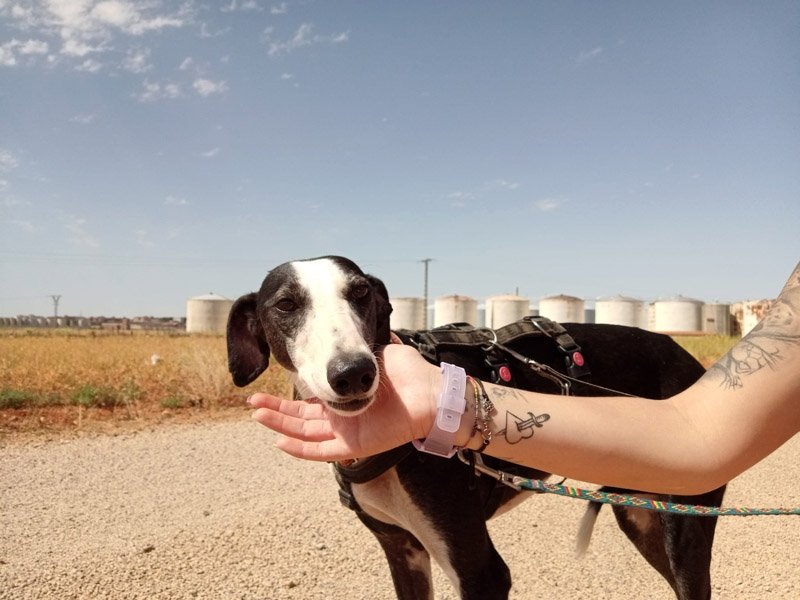 Leria wurde ganz allein ausserhalb von Villarrobledo gefunden. Die wunderschöne Hündin hatte entweder Glück und konnte einem Jäger entkommen oder wurde einfach ausgesetzt. In Spanien sind Galgos 'Arbeitsgeräte' und wenn diese nicht 'funktionieren', werden sie im Besten Fall ausgesetzt, oft aber auch einfach getötet. Leria ist sehr freundlich zu allen Menschen und versteht sich auch mit anderen Hunden gut. Interessenten sollten sich gut über die Rasse Galgo Espanol informieren.