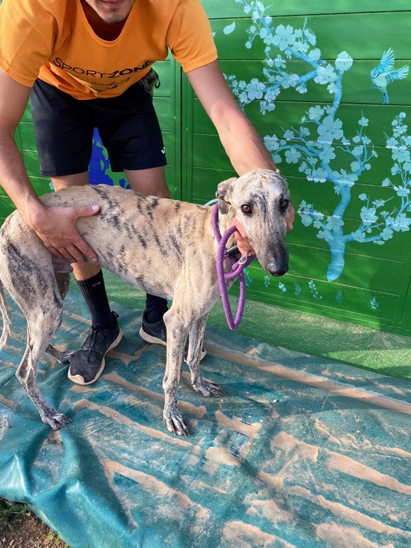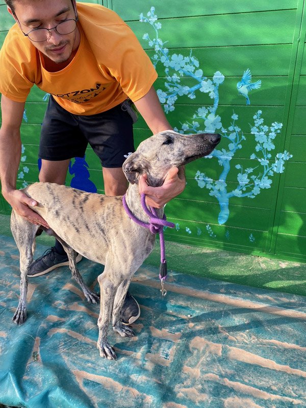 Quijote ist ein gestromter, hübscher Rüde, der auf einer Straße mit einem Seil um den Körper gefunden wurde. Vermutlich wurde er von einem Jäger aussortiert und musste einige Wochen allein überleben. Missbraucht als 'Hetzmaschine', gehalten in einem dunklen Verschlag an einer kurzen Kette, geschlagen, getreten und dann ausgesetzt – das ist die Lebensgeschichte vieler Galgos, die jedes Jahr die Tierheime füllen. Quijote hatte Glück und wurde von einem der wenigen netten Jäger gefunden und in die Albergue gebracht. Quijote hat nach einigen Keksen schnell erkannt, dass ihm nicht alle Menschen feindlich gestimmt sind und genießt mittlerweile die Streicheleinheiten, die er zum ersten Mal in seinem Leben bekommt. Trotz seiner schlechten Erfahrungen ist der schöne Rüde nicht überängstlich, er geht freundlich auf alle Menschen zu und genießt es mit den Menschen um ihn herum die Umgebung zu erforschen und neue Erfahrungen zu machen. Leider ist das im Tierheim nur sehr beschränkt möglich, es sind einfach zu viele Hunde und zu wenige Helfer um jedem Hund gerecht zu werden. So muss Quijote wohl noch ein bisschen weiter von neuen Abenteuern träumen. Haben Sie vielleicht ein Plätzchen für Quijote in Ihrem Heim – und in Ihrem Herzen frei?