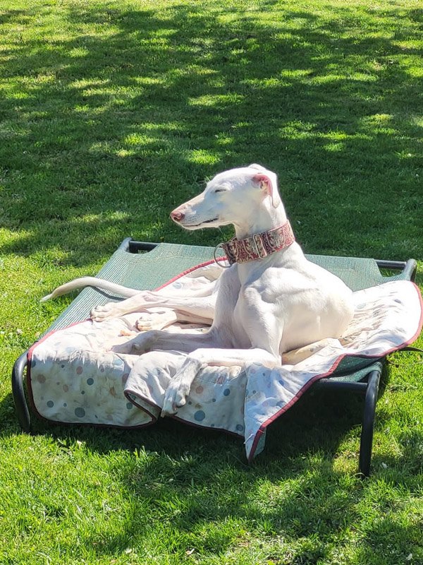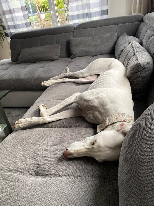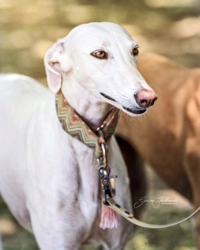 Louise ist eine sehr fröhliche und aufgeschlossene Galga. So sehr sie sich über andere Hunde bei Spaziergängen freut und denen freundlich und aufgeschlossen gegenübertritt und auch gern mit denen durch den Garten tobt, noch mehr liebt sie Streicheleinheiten von ihren Menschen. Kuscheln und schmusen ist für sie unabdingbar und deshalb sehen wir sie, anders als die meisten ihrer Art, tatsächlich eher in Einzelhaltung, wo sie alleine glänzen darf. Draußen zeigt sie sich sehr gut leinenführig. Bellende oder aggressive Hunde ignoriert sie, anders als Katzen. Den rassetypischen Jagdinstinkt kann sie nicht von der Pfote weisen. Grundkommandos wie 'Sitz' und 'Bleib' beherrscht sie. Auch an der Schleppleine und in eingezäunten Bereichen ist sie gut abrufbereit, wenn auch da lieber bei ihren Menschen als irgendwo anders. Das führt auch dazu, dass sie ungern lange Zeit allein ist und hier entsprechend Unterstützung benötigt. Louise ist eine wunderschöne und einzigartig tolle sowie liebebedürftige Hündin, die ein Für-immer-Körbchen mehr als verdient hat. Wir wünschen uns ein Zuhause mit Garten, in dem sie mit Ihrem Kuscheltier ein paar Runden drehen kann. Interessenten sollten sich gut über die Rasse Galgo Espanol informieren.
